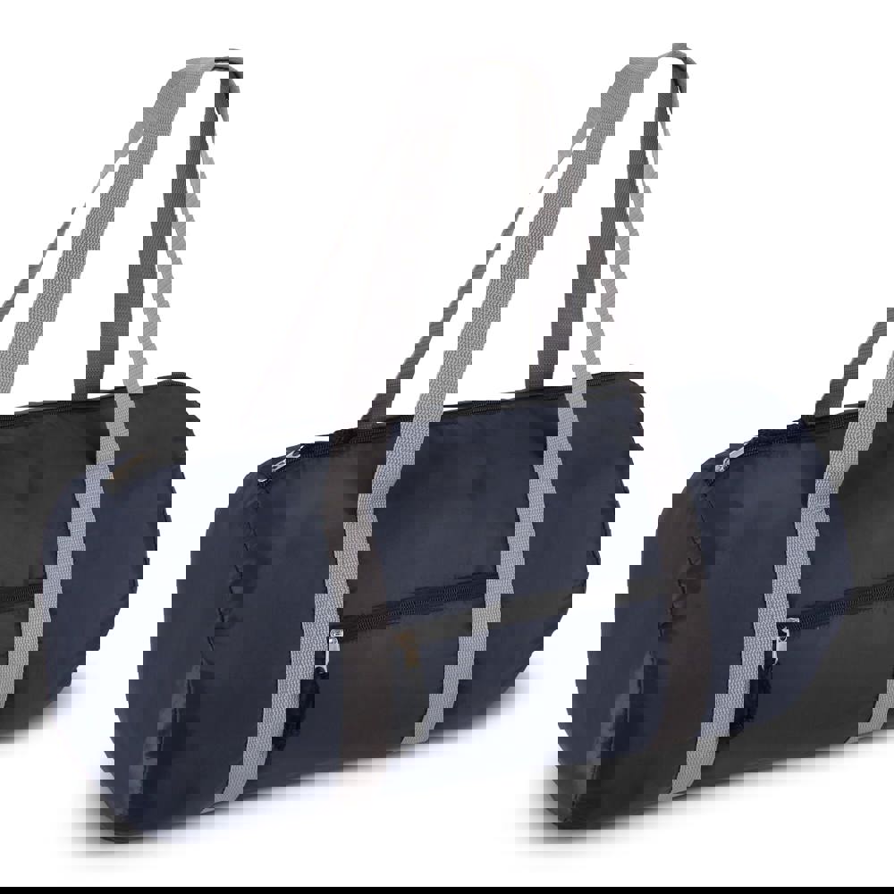 Leichte Sporttasche aus recyceltem 190T-PET, ideal für das Training, kurze Ausflüge oder einen Tag im Spa. Mit praktischer Fronttasche mit Reißverschluss und langen Schulterriemen für bequemen Transport. Lässt sich auf eine kompakte Größe zusammenfalten und ist somit überallhin mitnehmbar.