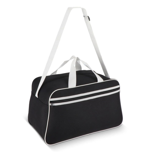 Beliebte Reise- und Sporttasche aus strapazierfähigem 600D recyceltem PET. Ausgestattet mit einem Frontfach mit Reißverschluss, Tragegriffen und einem verstellbaren Schultergurt für bequemen Transport.