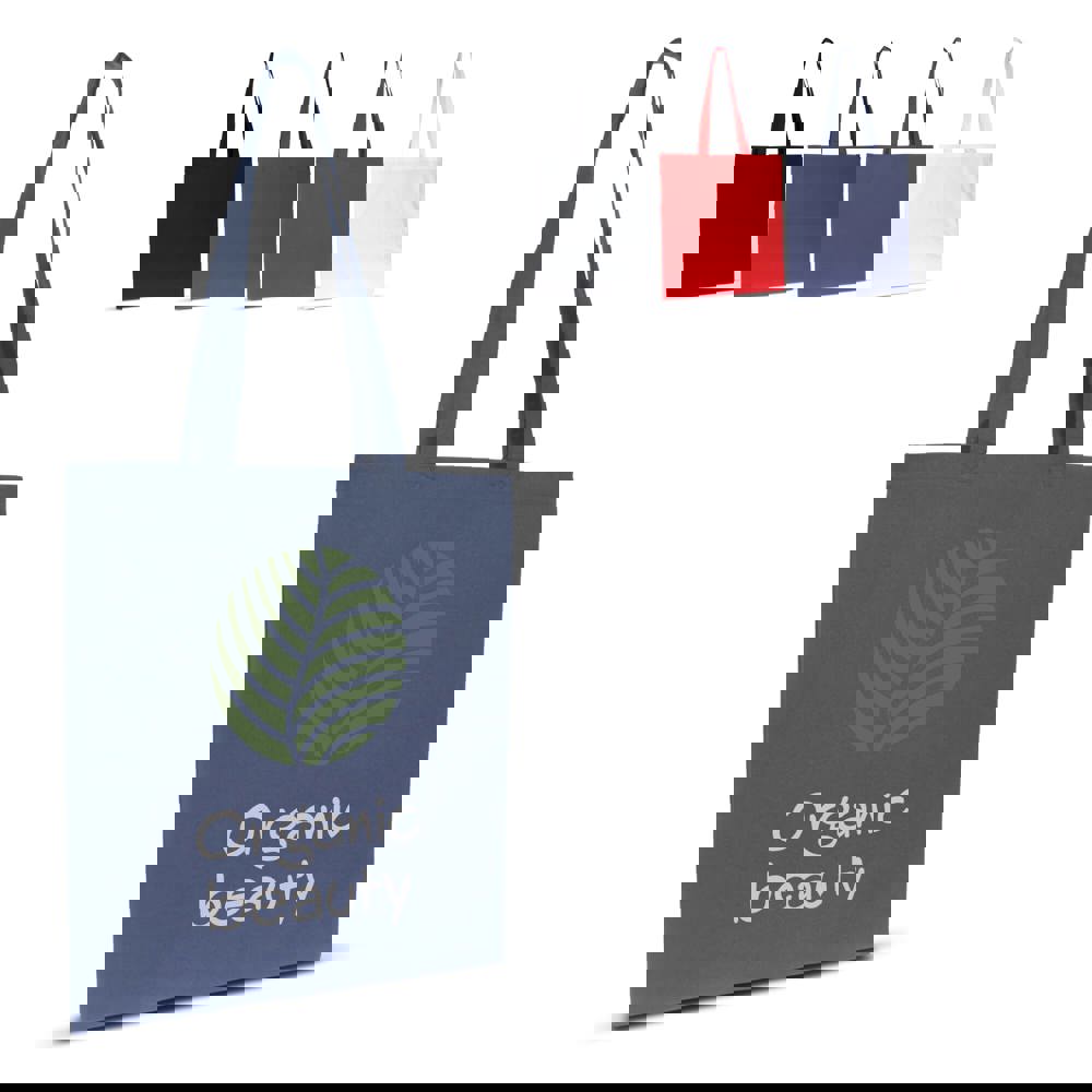 Diese nachhaltige Einkaufstasche besteht aus 140 g/m² Bio-Baumwolle und verfügt über lange Griffe zum einfachen Tragen. Eine beliebte Wahl für den täglichen Einkauf und Besorgungen.