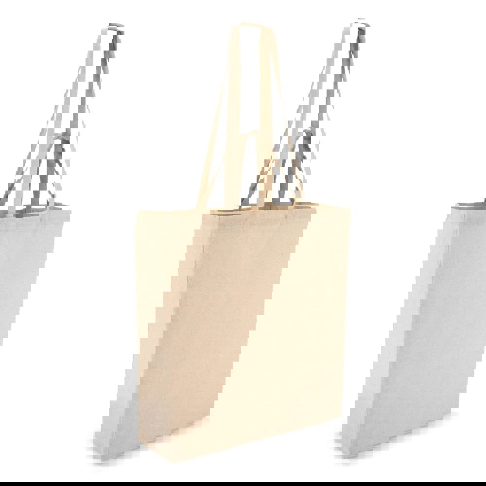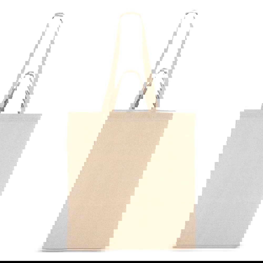 Vielseitige Tote aus 140 g/m² Baumwolle in Naturfarbe mit langen und kurzen Griffen für flexible Tragemöglichkeiten. Oeko-Tex®-zertifiziert. Ideal für den Einzelhandel, Veranstaltungen oder den täglichen Gebrauch.
