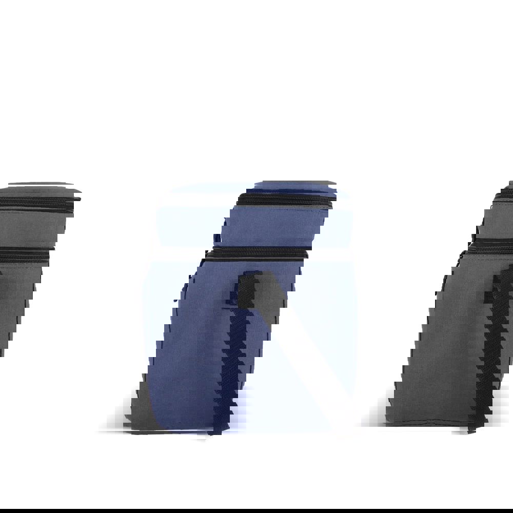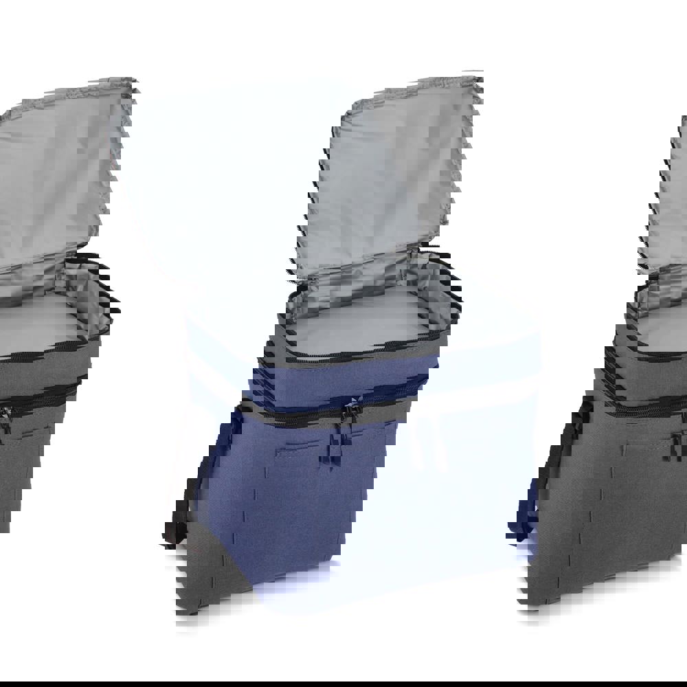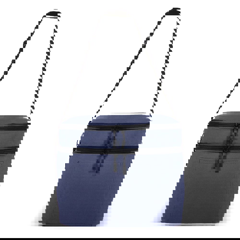 Kühltasche aus recyceltem 600D-PET mit einem Fassungsvermögen von 15 Litern, mit einem größeren Bodenfach und einer kleineren oberen Tasche. Das isolierte PEVA-Futter ermöglicht es Ihnen, warme und kalte Gegenstände getrennt aufzubewahren, während der verstellbare Schultergurt für bequemen Tragekomfort sorgt – perfekt für unterwegs.