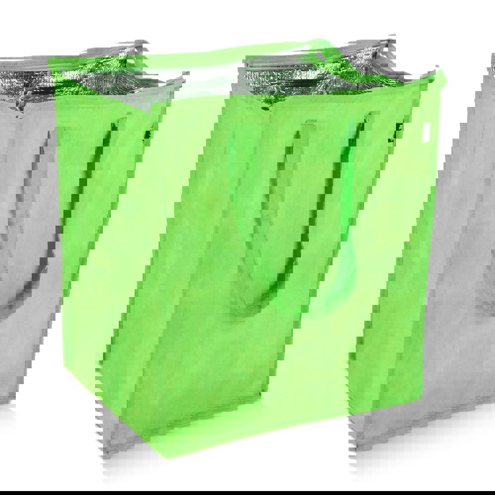 Kühltasche aus recyceltem PET-Non Woven (75 g/m²) mit Aluminiumfolienfutter. Große Front fürs Branding. Ideal für Einkaufstouren oder Picknicks.