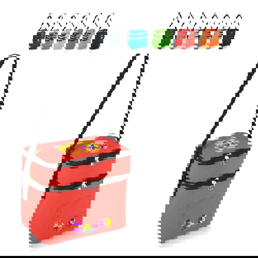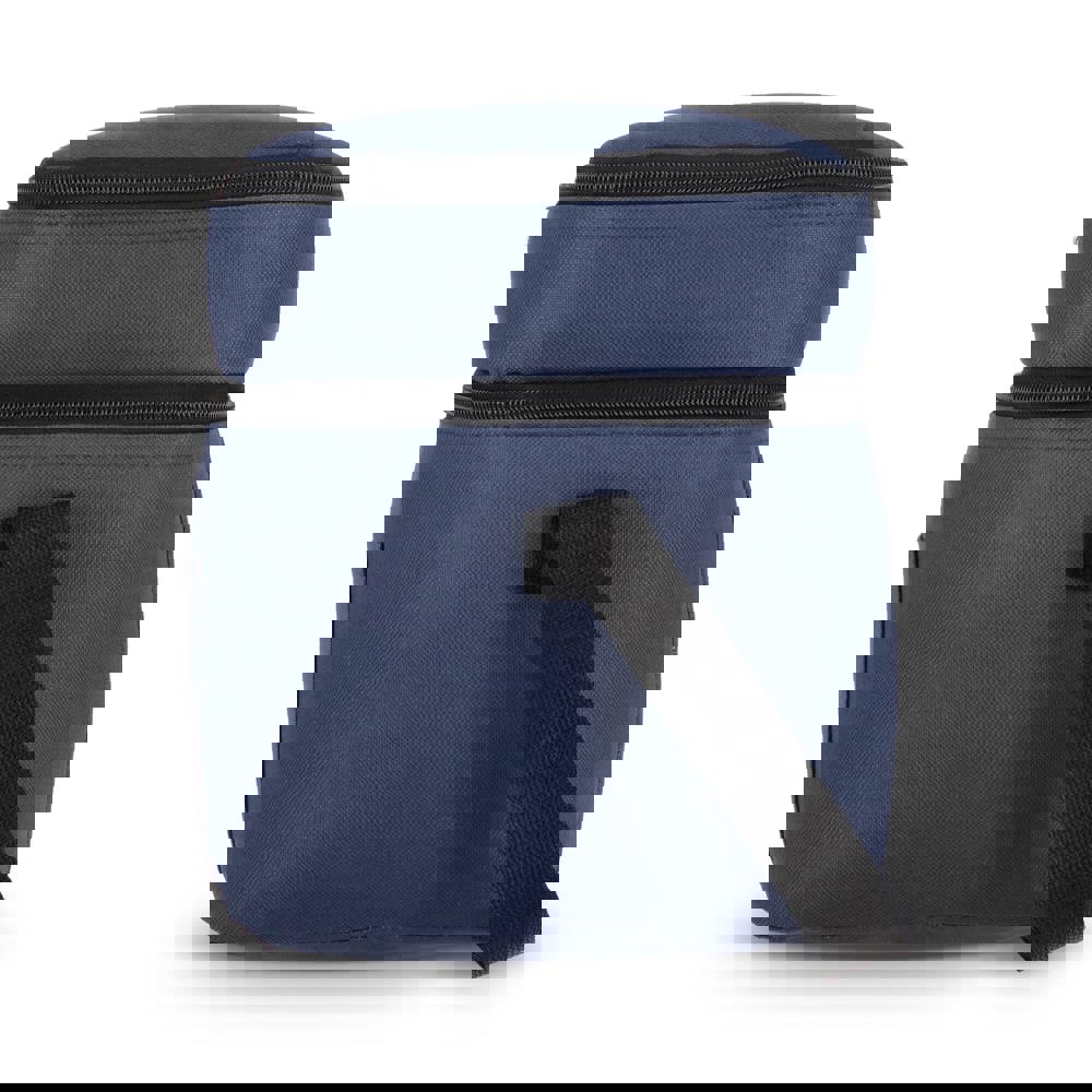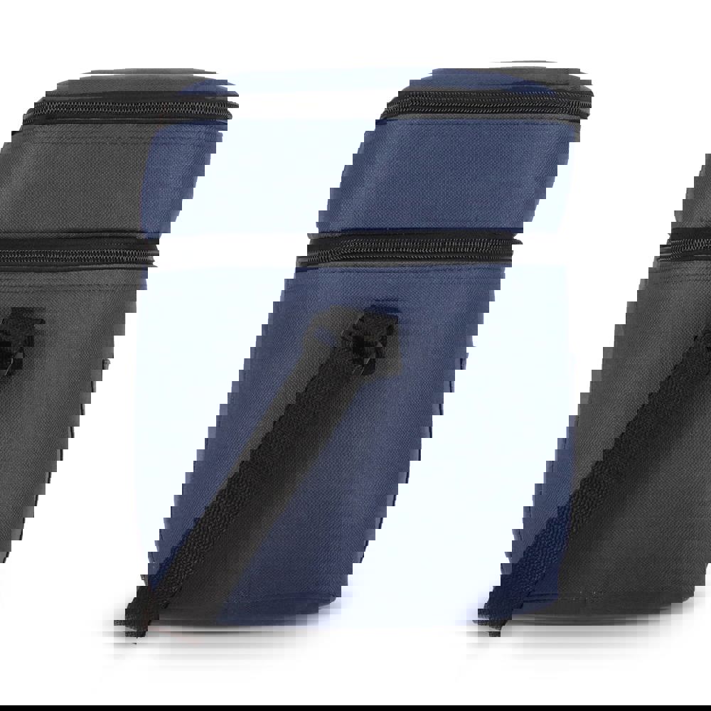 12-Liter-Kühltasche aus haltbarem, recyceltem PET 600D. Mit zwei Fächern für die Organisation von Lebensmitteln. Mit Alufolienfutter und einer Vordertasche. Praktisch und geräumig.