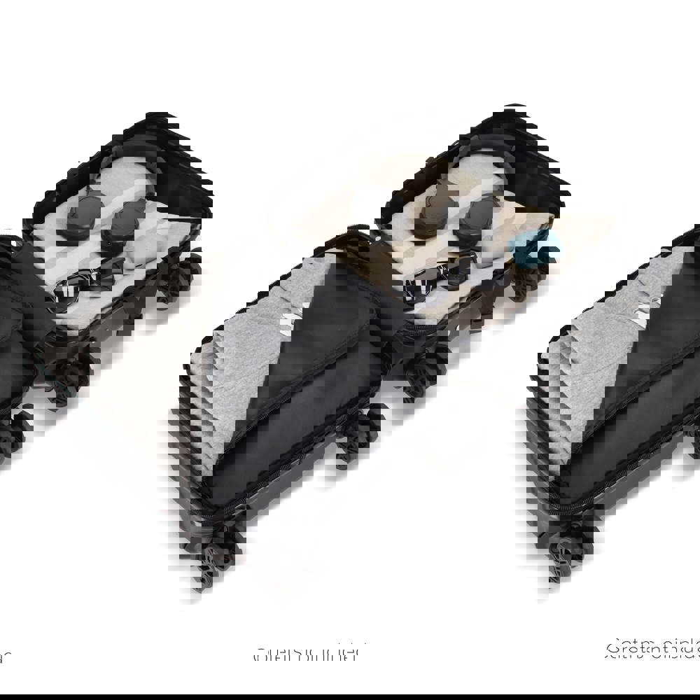 Dieser kompakte Kabinenkoffer wurde speziell für die Größenbeschränkungen vieler Billigfluglinien entwickelt und passt unter den Sitz. Dank seiner vier Lenkrollen ist er leicht und wendig. Ausgestattet mit einem Zahlenschloss und einer Handyhalterung im Griff macht dieser Koffer das Warten am Flughafen, Bahnhof oder Bahnsteig wesentlich angenehmer.