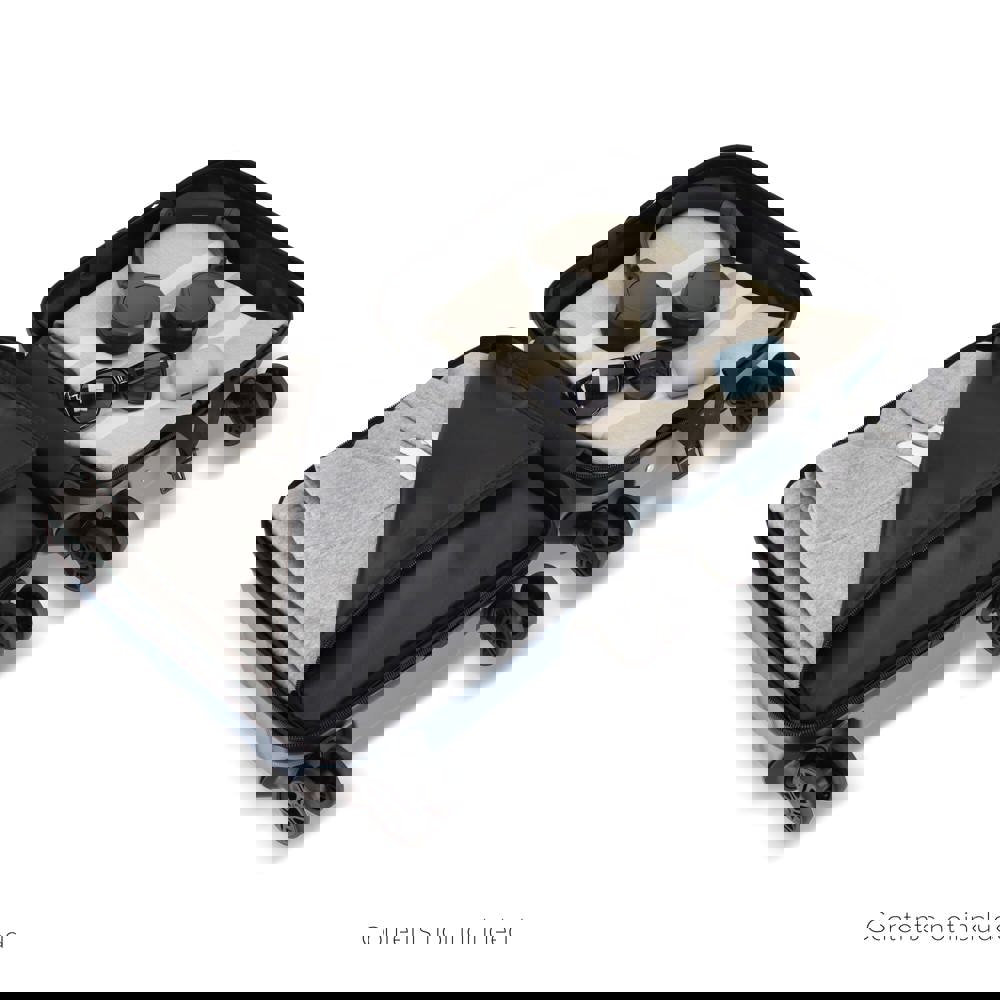 Dieser kompakte Kabinenkoffer wurde speziell für die Größenbeschränkungen vieler Billigfluglinien entwickelt und passt unter den Sitz. Dank seiner vier Lenkrollen ist er leicht und wendig. Ausgestattet mit einem Zahlenschloss und einer Handyhalterung im Griff macht dieser Koffer das Warten am Flughafen, Bahnhof oder Bahnsteig wesentlich angenehmer.