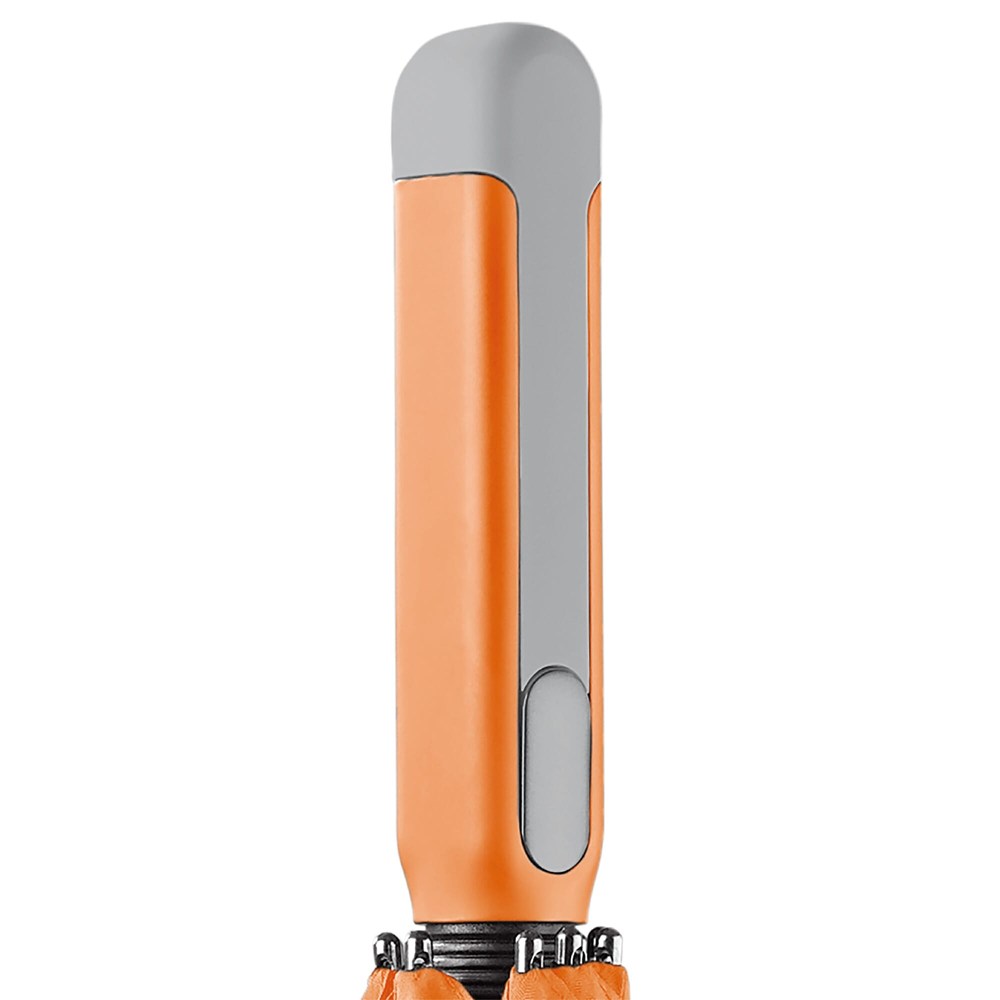 Großer Regenschirm mit winddichtem Fiberglasgestell. Der pfiffige Farbeffekt zwischen der Pongee-Polyesterkappe und dem ergonomischen Griff verleiht dem Schirm einen zeitlosen Look. Damit ist er für jeden geeignet.