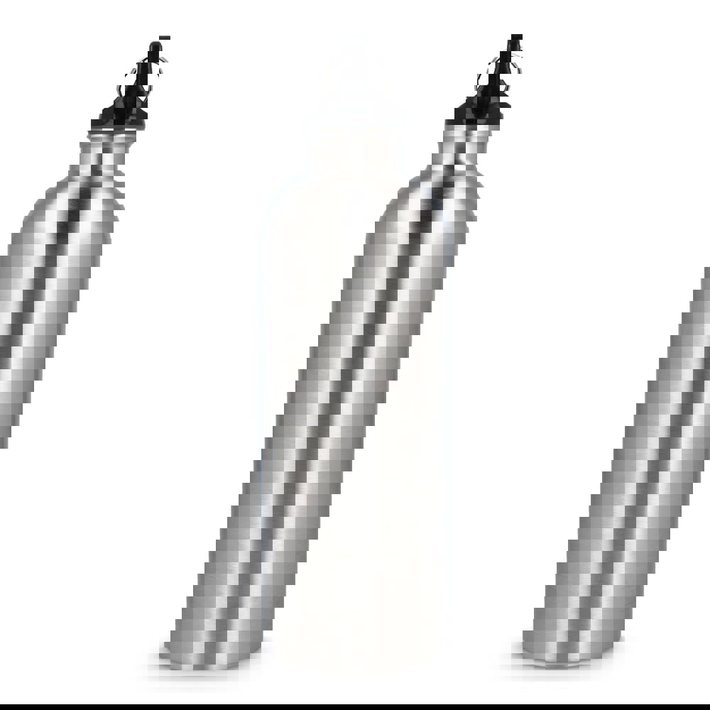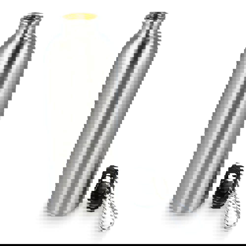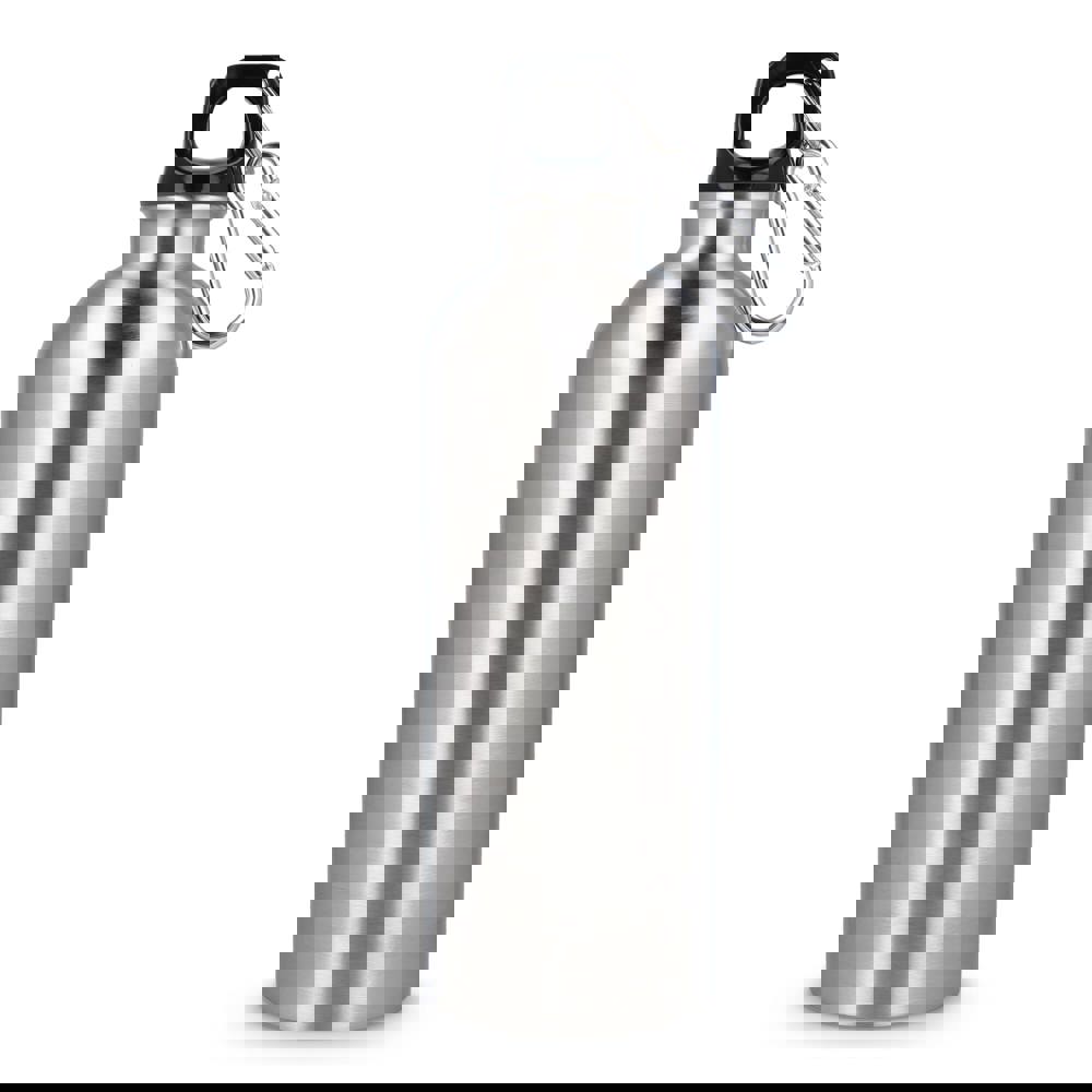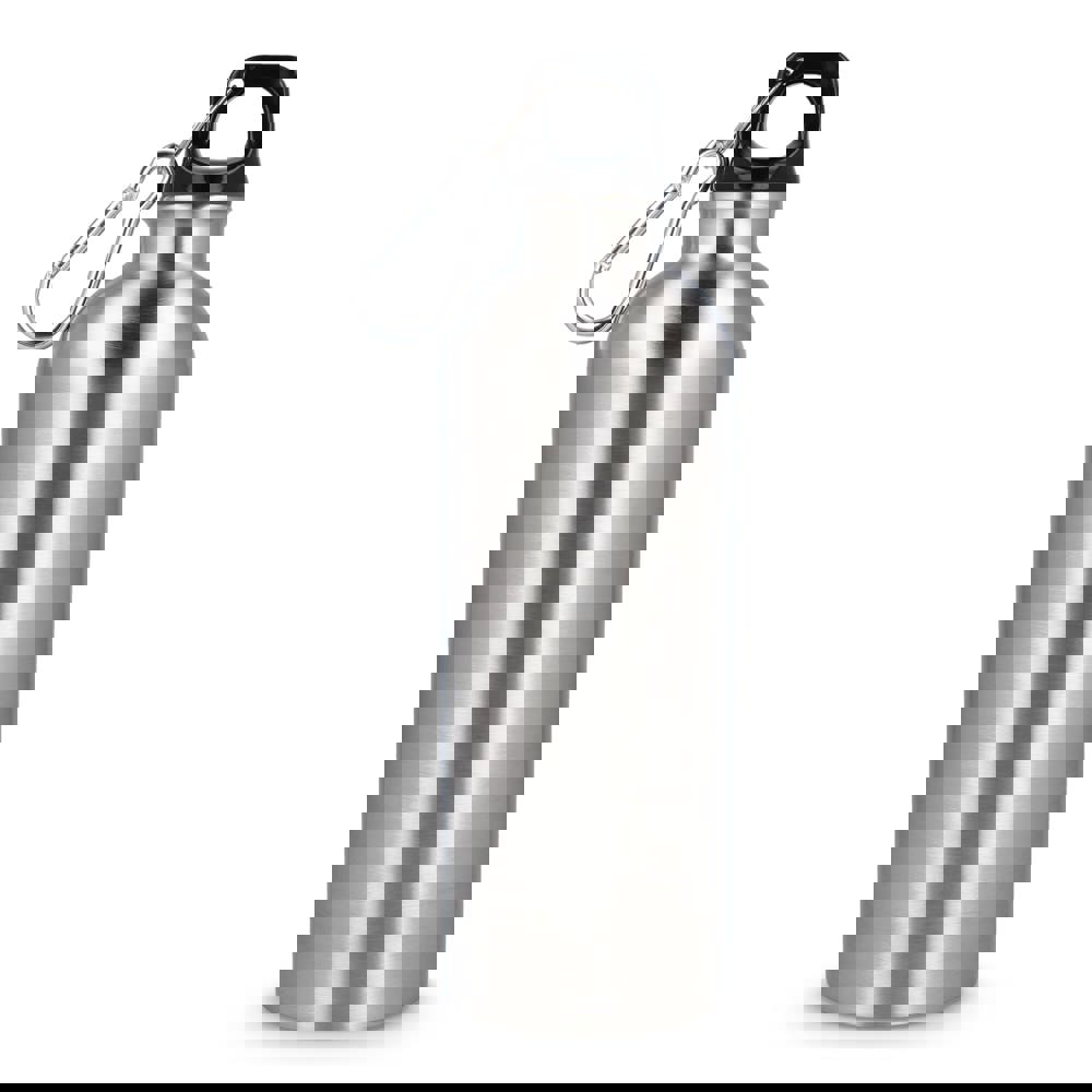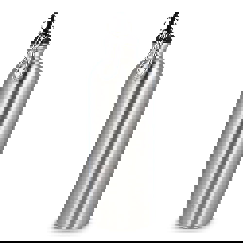 Eine robuste, einwandige 500-ml-Flasche aus recyceltem Edelstahl mit Karabinerhaken zum einfachen Befestigen an Taschen oder sonstige Ausrüstung. Die Flasche ist leicht, wiederverwendbar und ideal, um unterwegs ausreichend Flüssigkeit zu sich zu nehmen. Erhältlich in verschiedenen glänzenden und metallic Farben. Jede Flasche ist in einer Geschenkbox verpackt.