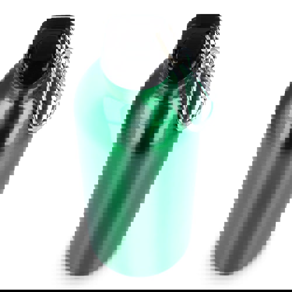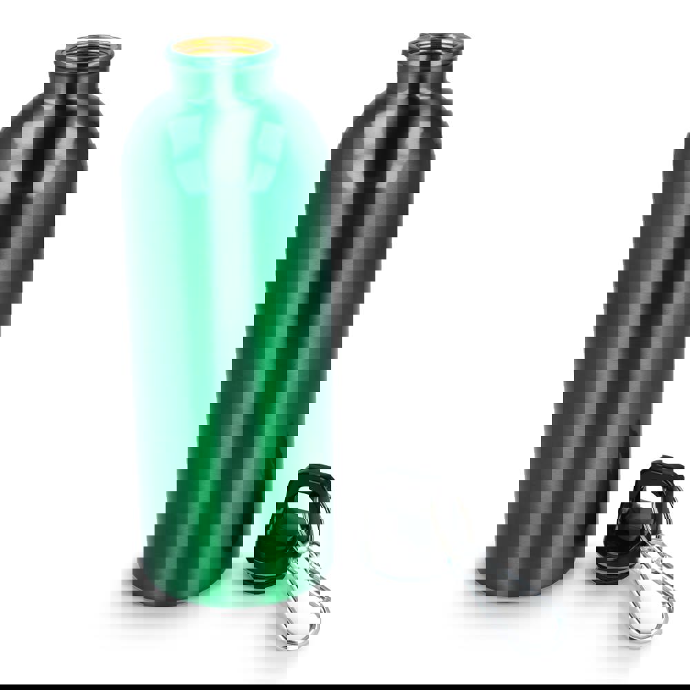 Eine robuste, einwandige 500-ml-Flasche aus recyceltem Edelstahl mit Karabinerhaken zum einfachen Befestigen an Taschen oder sonstige Ausrüstung. Die Flasche ist leicht, wiederverwendbar und ideal, um unterwegs ausreichend Flüssigkeit zu sich zu nehmen. Erhältlich in verschiedenen glänzenden und metallic Farben. Jede Flasche ist in einer Geschenkbox verpackt.