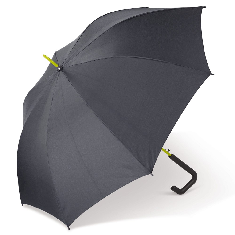 Schicker Stockschirm mit einem markanten Hakengriff. Das farbenfrohe Gestell ist aus Fiberglas gefertigt, um ihm zusätzliche Stärke zu verleihen. Hergestellt aus Pongee-Polyester.