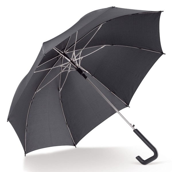 Schicker Stockschirm mit einem markanten Hakengriff. Das farbenfrohe Gestell ist aus Fiberglas gefertigt, um ihm zusätzliche Stärke zu verleihen. Hergestellt aus Pongee-Polyester.