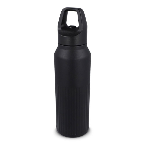 Robuste Edelstahl-Isolierflasche mit einem Fassungsvermögen von 500 ml und einem Easy-Click-Deckel. Die Flasche hat ein modernes Streifenmuster. Heiße Getränke bleiben 8 Stunden lang heiß und kalte Getränke 24 Stunden lang kalt. Einzeln verpackt in einer Geschenkbox.