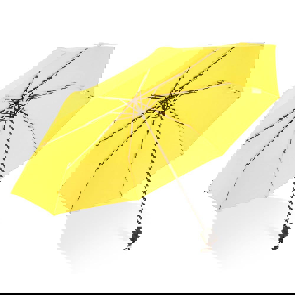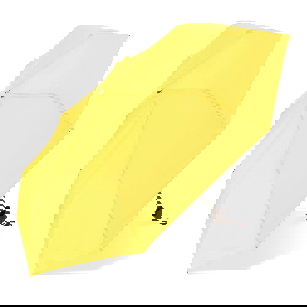 Kompakter Faltschirm mit einem Schirmdach aus 190T-Polyester, der für stürmische Bedingungen ausgelegt ist. Verfügt über einen PP-Griff und umfasst eine Hülle zur einfachen Aufbewahrung. Manuelles Öffnen und Schließen.
