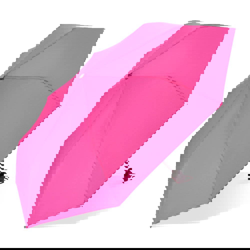Kompakter Faltschirm mit einem Schirmdach aus 190T-Polyester, der für stürmische Bedingungen ausgelegt ist. Verfügt über einen PP-Griff und umfasst eine Hülle zur einfachen Aufbewahrung. Manuelles Öffnen und Schließen.