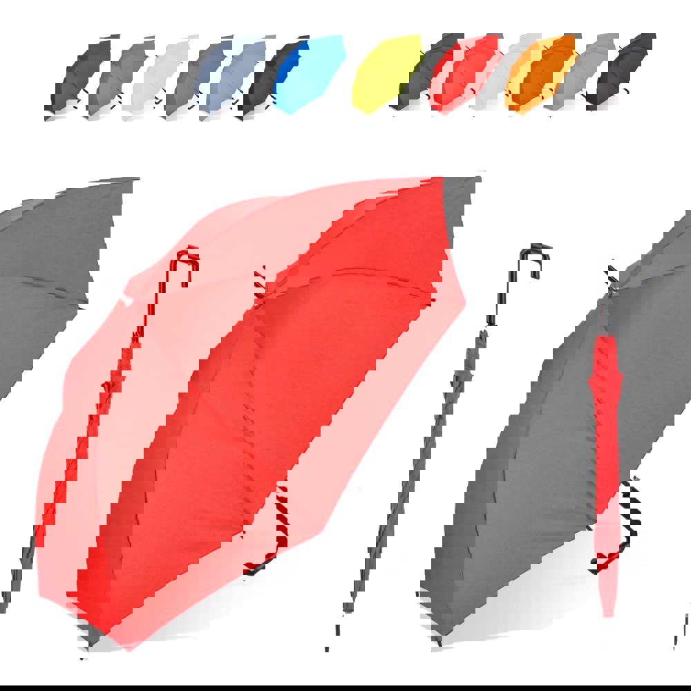 Dieser 23-Zoll-Hakenschirm verfügt über unseren einzigartigen ergonomischen Griff mit quadratischem Design und abgerundeten Kanten für einen besseren Halt. Er verfügt über eine automatische Öffnungsfunktion für mehr Komfort und ein langlebiges Fiberglasgestell, das für zuverlässige Leistung bei regnerischen Bedingungen entwickelt wurde.