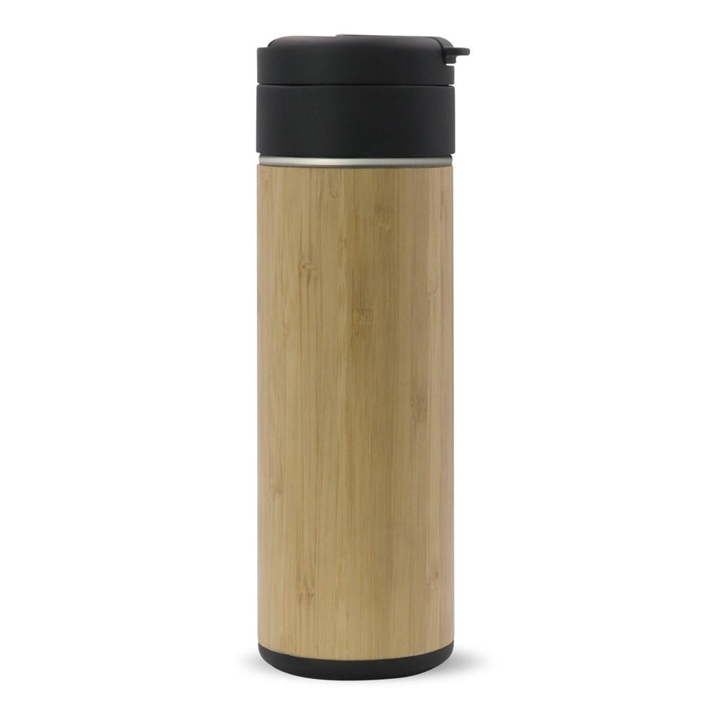Doppelwandiger, vakuumisolierter Isolierbecher aus der Toppoint-Serie 'Flow'. Der Isolierbecher im Bambus und dem Klappdeckel ist 100% auslaufsicher und leicht zu transportieren. Die Innen- und Außenwand sind aus Edelstahl und hochwertig verarbeitet. Die Getränke bleiben dadurch länger optimal temperiert. Der Becher hält die Getränke bis zu 12 Stunden warm und/oder bis zu 24 Stunden kalt.