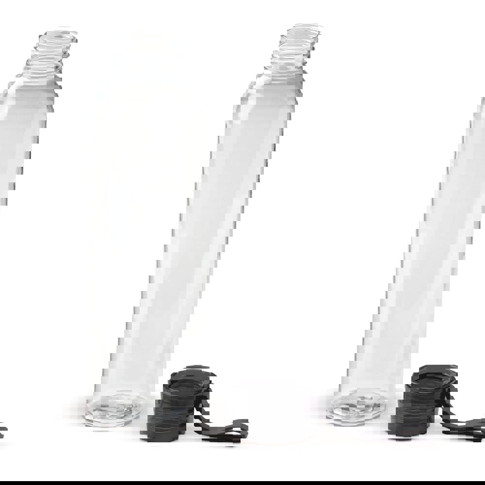 Einwandige Trinkflasche aus Tritan-Material mit transparentem, farbigem Verschluss. Diese Flasche ist mit einem praktischen Silikonband ausgestattet, so dass sie leicht zu tragen oder z. B. an einer Tasche zu befestigen ist. Die Flasche ist nur für kalte Getränke ohne Kohlensäure geeignet und ist BPA-frei. Wird in einem Geschenkkarton geliefert.