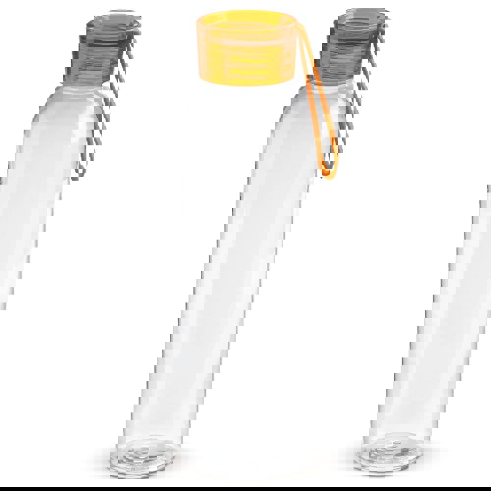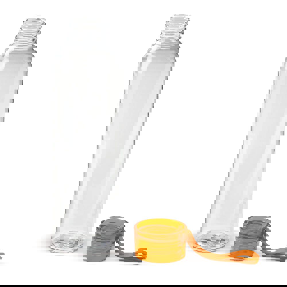 Einwandige Trinkflasche aus Tritan-Material mit transparentem, farbigem Verschluss. Diese Flasche ist mit einem praktischen Silikonband ausgestattet, so dass sie leicht zu tragen oder z. B. an einer Tasche zu befestigen ist. Die Flasche ist nur für kalte Getränke ohne Kohlensäure geeignet und ist BPA-frei. Wird in einem Geschenkkarton geliefert.