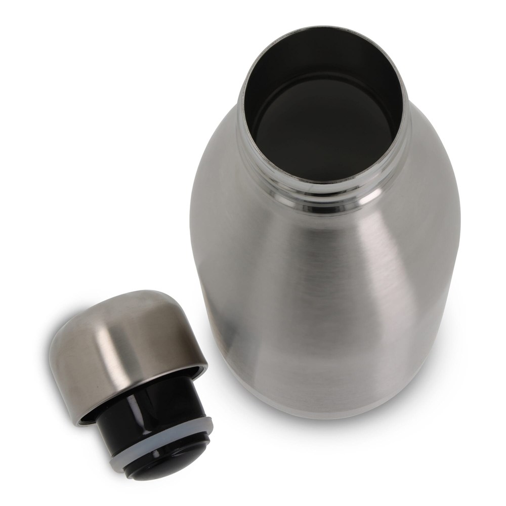 Doppelwandige Vakuum Flasche, welche zu 100% dicht und einfach mitzunehmen ist. Die Innen- und Aussenseite besteht aus Edelstahl. Neben dem klassischen Design ist die Flasche von sehr hochwertiger Qualität, die dafür sorgt, dass Ihr Getränk länger die gewünschte Temperatur behält. Ebenfalls geeignet für kohlensäurehaltige Getränke.