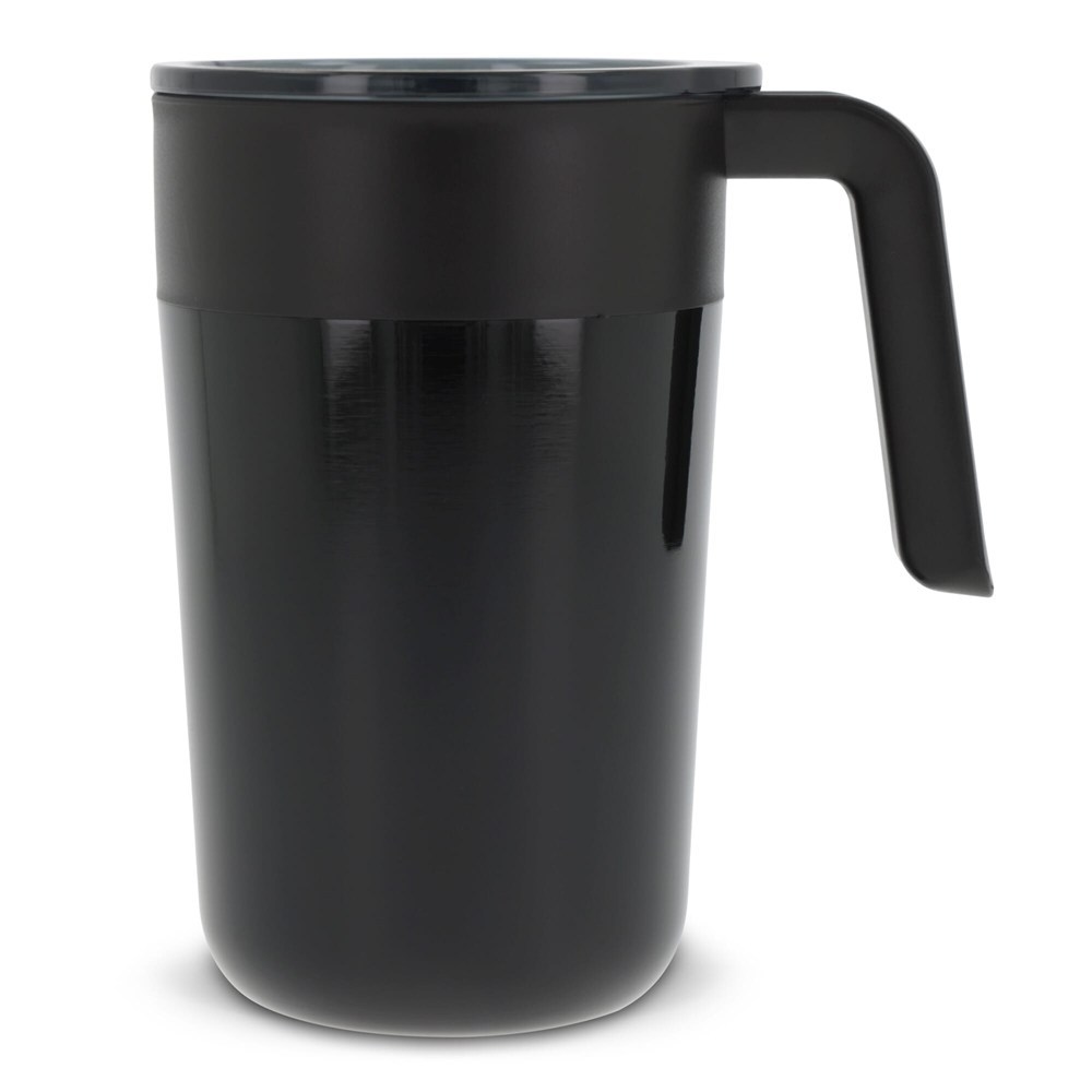 Doppelwandiger Kaffeebecher mit Deckel und einer verschließbaren Trinköffnung. Die Aussenwand ist... mehr