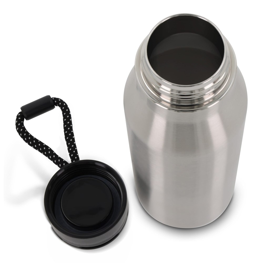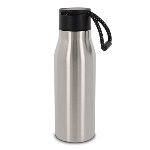 Doppelwandige Isolierflasche mit einer Trageschlaufe. Die Flasche besticht mit einem robusten Design und einem Fassungsvermögen von 600ml. Das Modell wird in einer Geschenkverpackung geliefert.