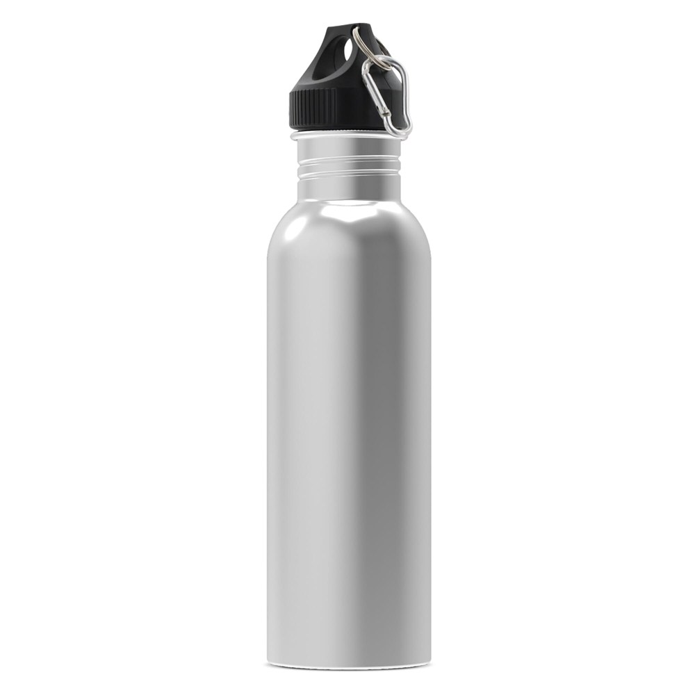 Einwandige Trinkflasche aus Edelstahl. Die 100% auslaufsichere Trinkflasche wird in einer Geschenkverpackung geliefert. Die Pulverbeschichtung der Aussenwände verleiht der Flasche ein elegantes Aussehen. Geeignet für kalte, kohlensäurefreie Getränke.