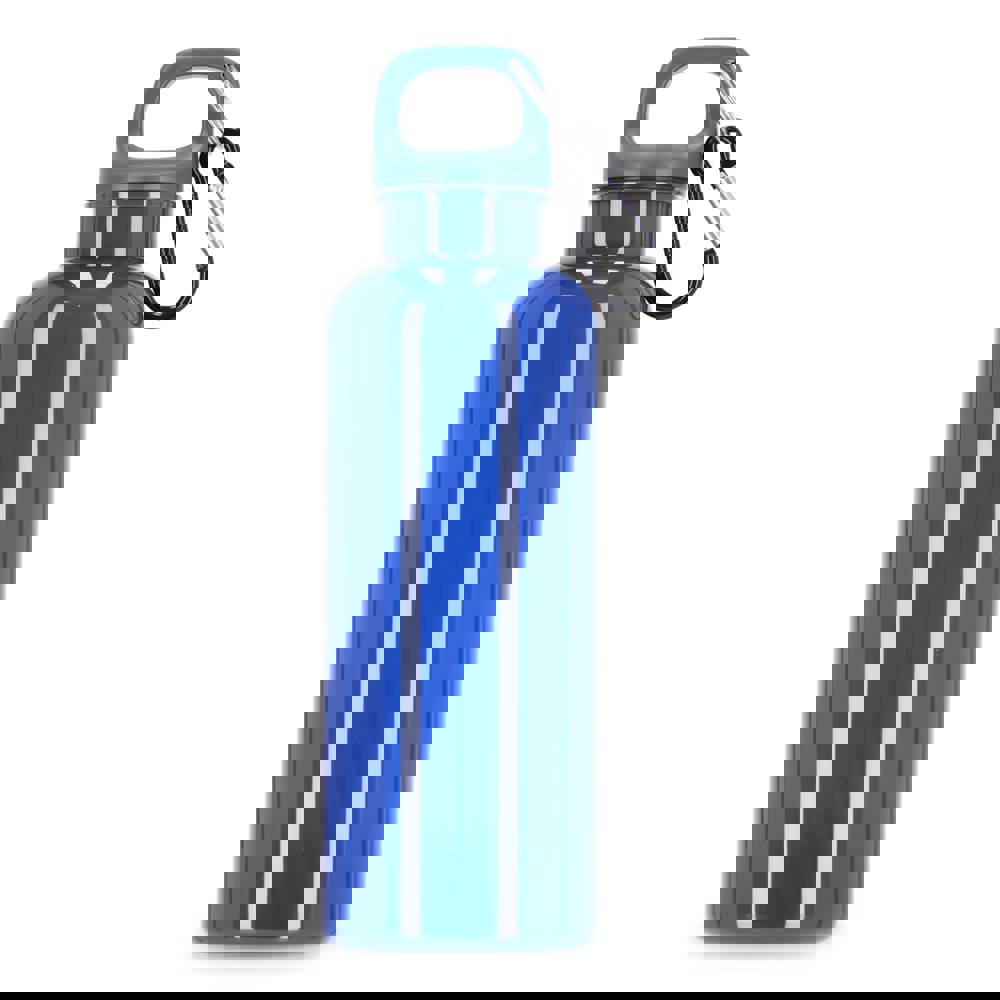 Mit dieser 500-ml-Wasserflasche aus R-PET mit blickdichter Oberfläche bleiben Sie stilvoll und nachhaltig mit Flüssigkeit versorgt. Ausgestattet mit einem praktischen Karabiner-Clip, ist sie perfekt für die Befestigung an Rucksäcken, Handtaschen oder Sporttaschen. Erhältlich in einer Reihe von satten Trend- und Werbefarben.