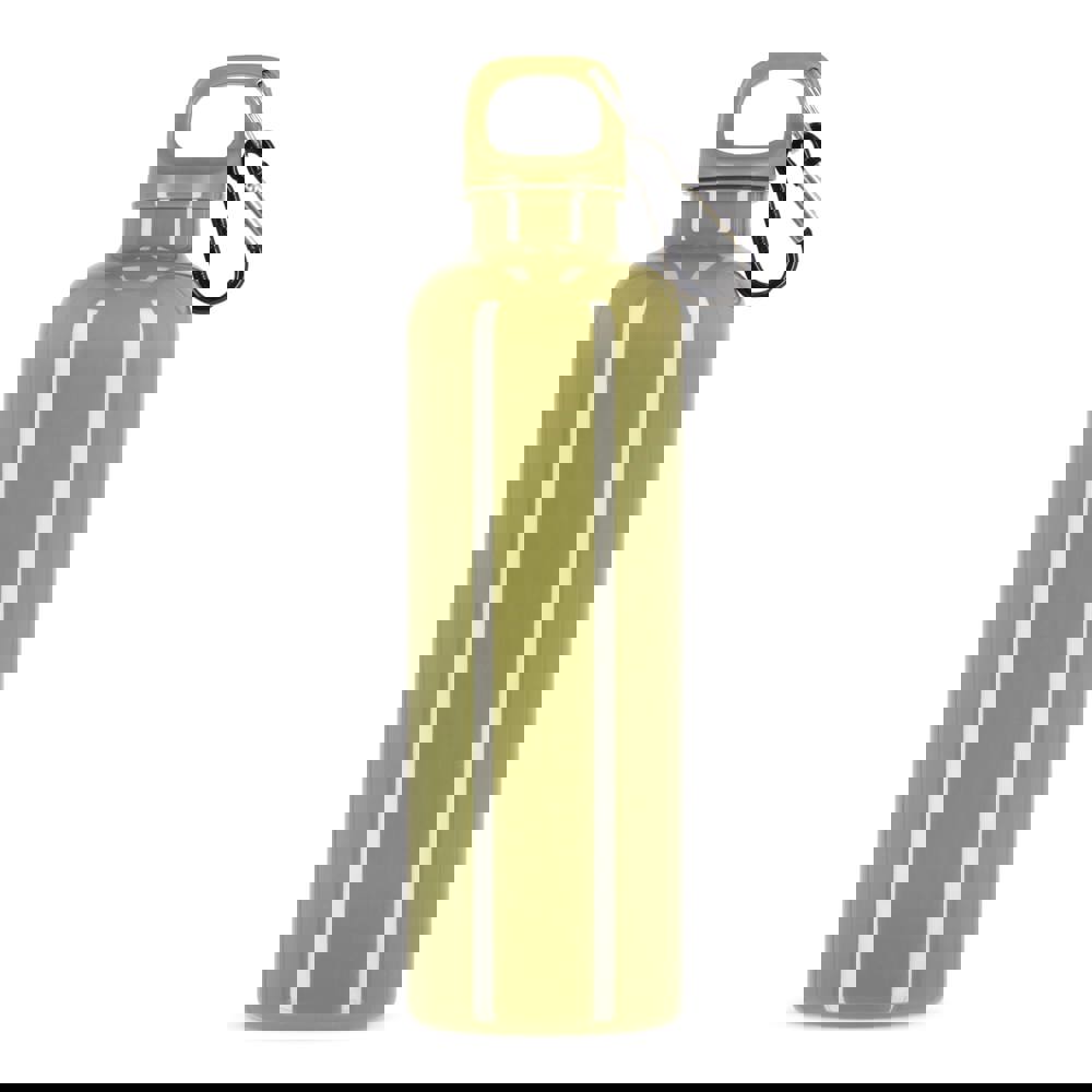 Mit dieser 750-ml-Wasserflasche aus R-PET mit blickdichter Oberfläche bleiben Sie stilvoll und nachhaltig mit Flüssigkeit versorgt. Ausgestattet mit einem praktischen Karabiner, ist es perfekt für die Befestigung an Rucksäcken, Handtaschen oder Sporttaschen. Erhältlich in einer Reihe von satten Trend- und Werbefarben.