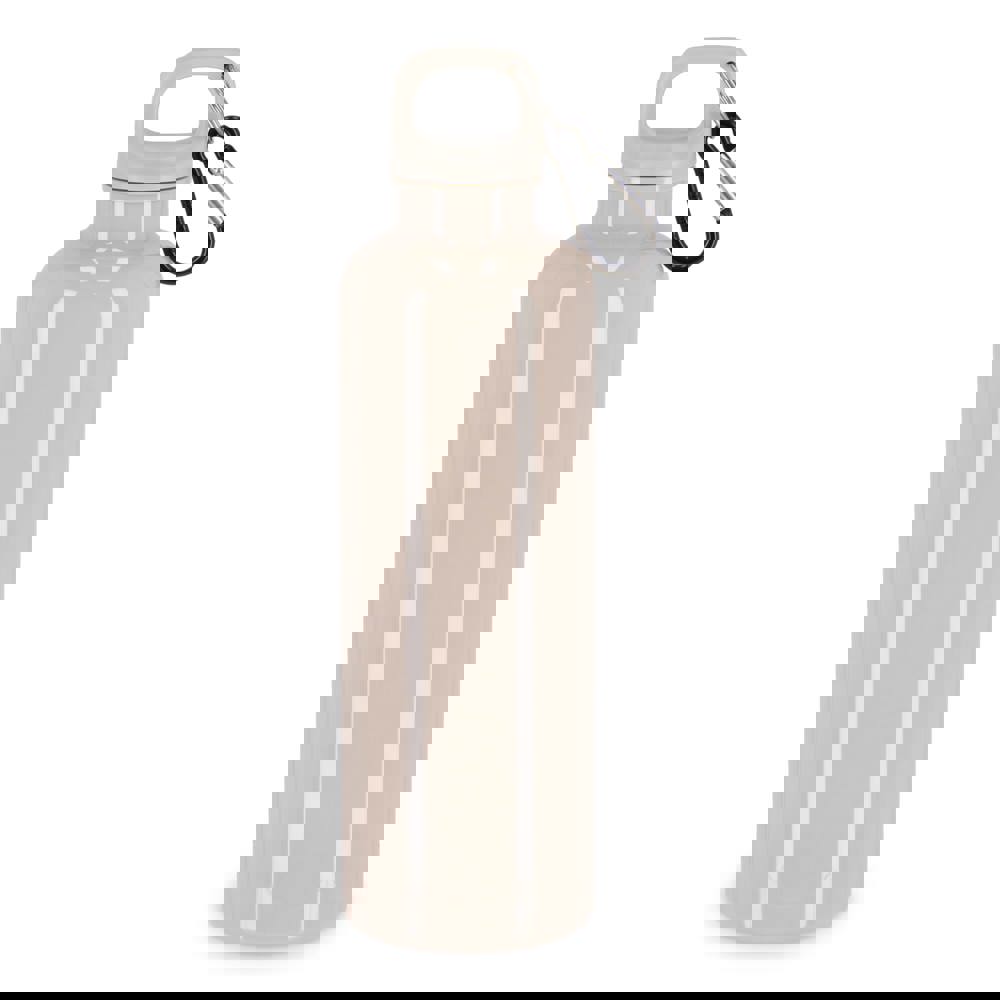 Mit dieser 750-ml-Wasserflasche aus R-PET mit blickdichter Oberfläche bleiben Sie stilvoll und nachhaltig mit Flüssigkeit versorgt. Ausgestattet mit einem praktischen Karabiner, ist es perfekt für die Befestigung an Rucksäcken, Handtaschen oder Sporttaschen. Erhältlich in einer Reihe von satten Trend- und Werbefarben.