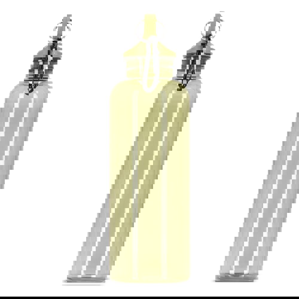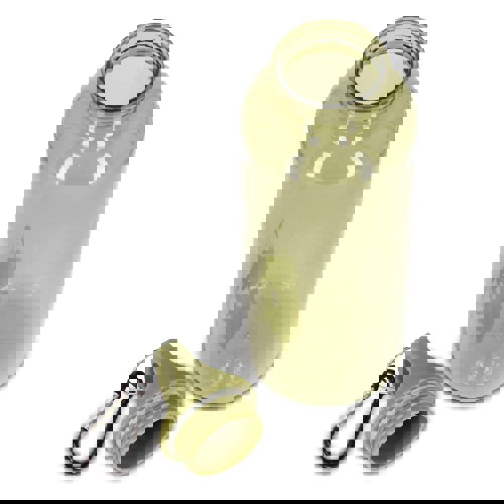 Mit dieser 500-ml-Wasserflasche aus R-PET mit transparentem Finish bleiben Sie stilvoll und nachhaltig hydriert. Ausgestattet mit einem praktischen Karabiner, ist es perfekt für die Befestigung an Rucksäcken, Handtaschen oder Sporttaschen. Erhältlich in einer Reihe von satten Trend- und Werbefarben.