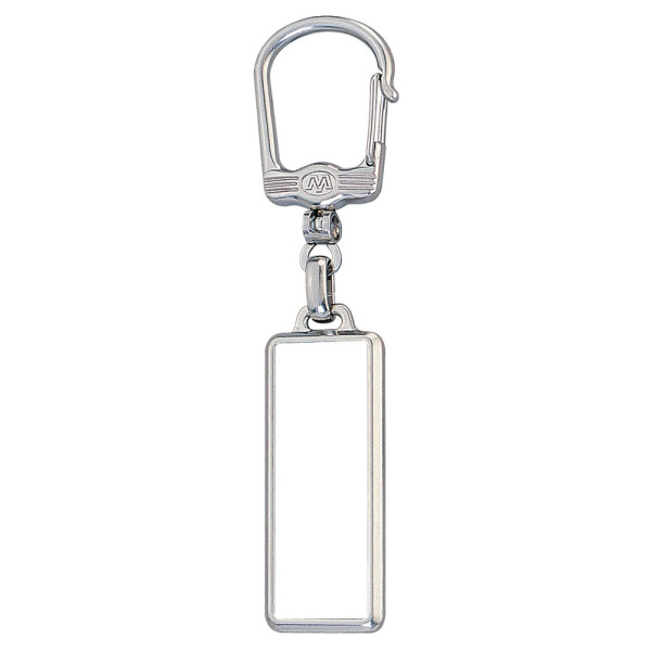 Rechteckiger Metallschlüsselanhänger mit Karabiner und doppelseitigem Doming. mehr