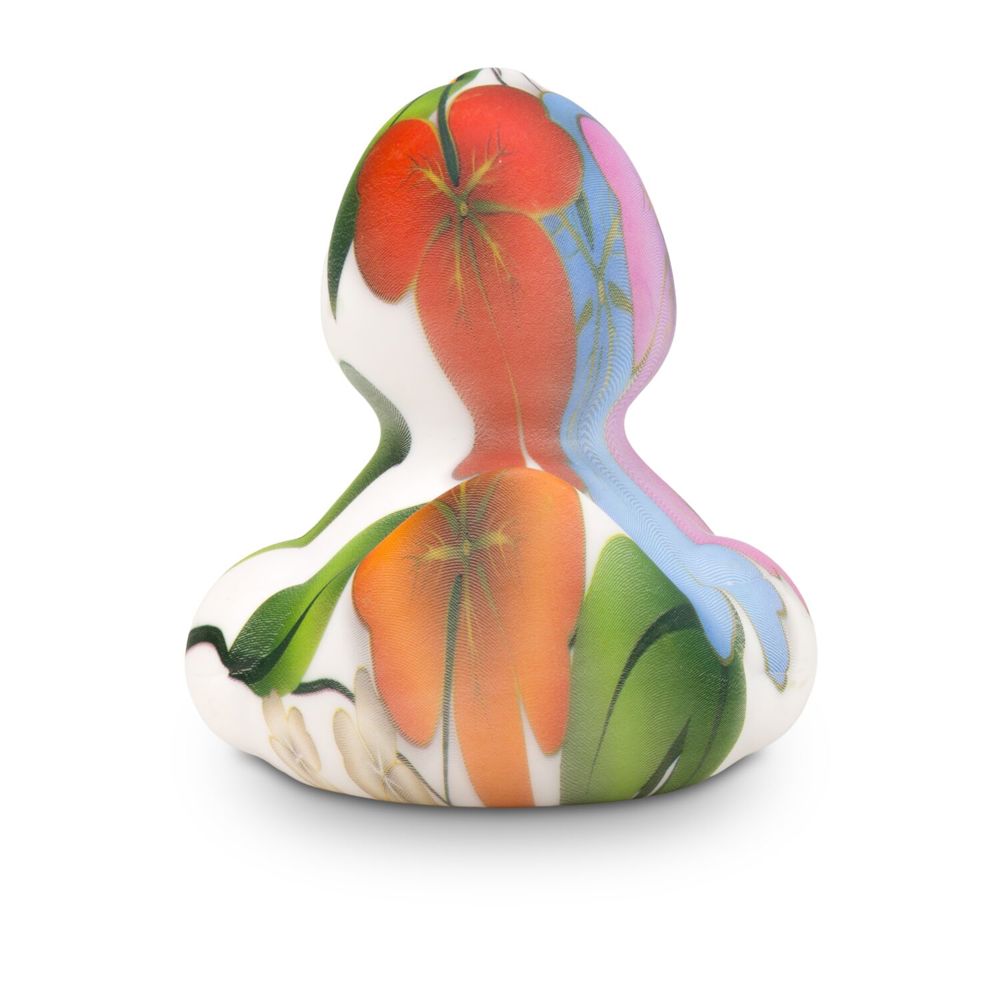Fiona Flower ist ein wandelndes Blütenmeer. Ihr Gefieder besteht aus einem Strauß an wild blühenden bunten Blumen. Das spezielle Herstellungsverfahren lässt jede Fiona Flower anders aussehen. Eine echte Schönheit eben UND ein Unikat. Mit dieser Ente machen Sie Floristen und Gartenfreunden garantiert eine Freude. Größe: ca. 8 cm. Inklusive Quietschventil