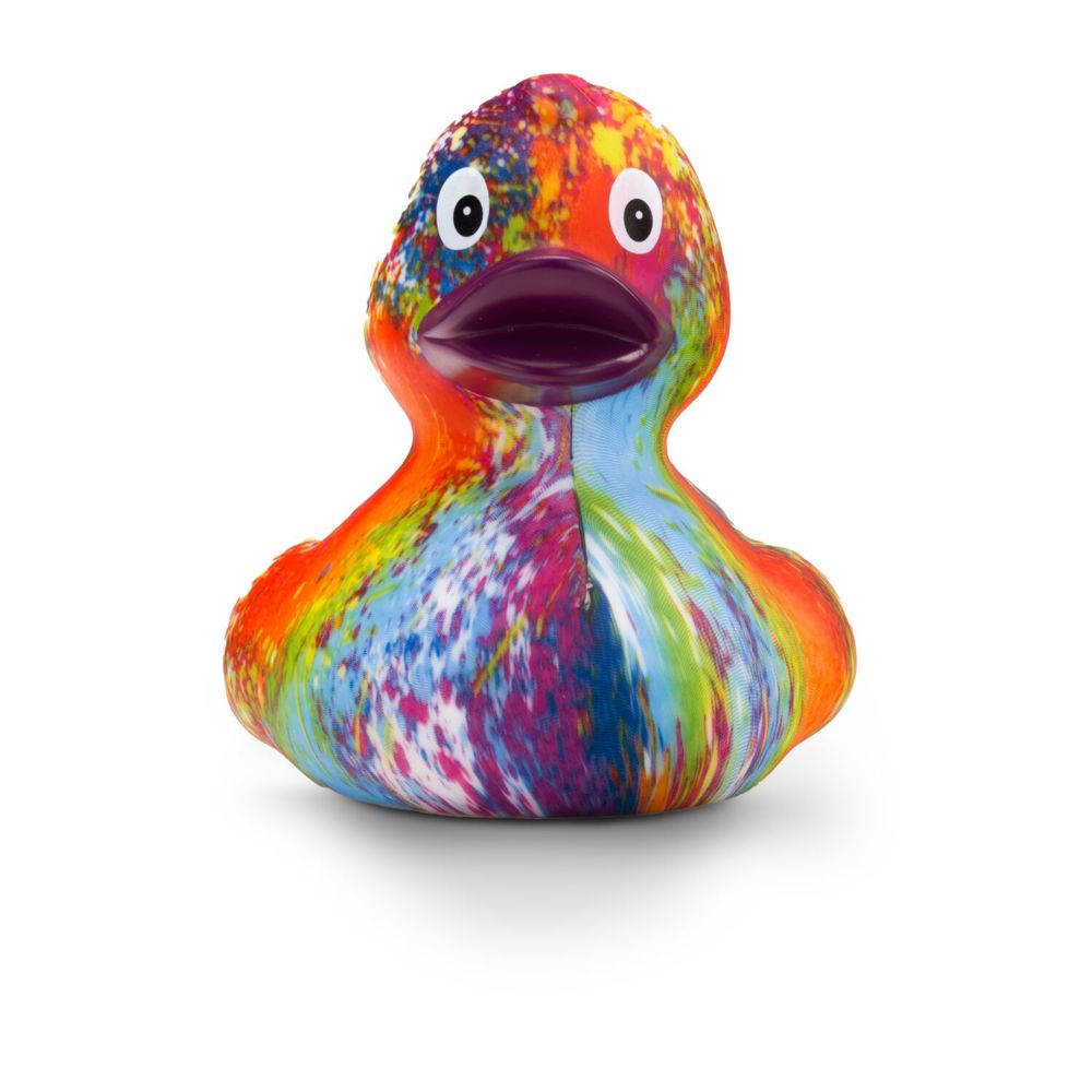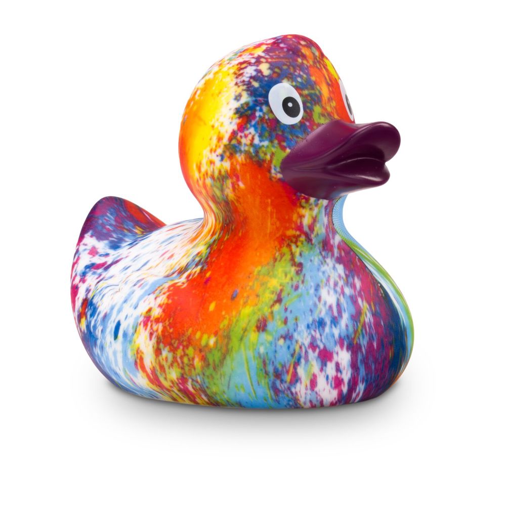 Robin Rainbow - hier ist der Name Programm. Er trägt einen bordeauxfarbenen Schnabel und dazu ein kunterbuntes Gefieder, welches aufgrund des speziellen Herstellungsverfahrens, jedes Mal ein wenig anders aussieht. So ist jeder Robin ein echtes Unikat. Diese besondere Werbeente steht für Individualität, Spaß und Freude am Leben. Größe: ca. 8 cm. Inklusive Quietschventil