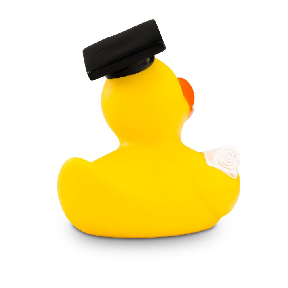 Albert Akademiker ist der schlauste Schnabel im Ententeich. Stolz trägt er seinen Absolventenhut und sein Diplom in der Hand. Er hat die Enten-Uni abgeschlossen und während seinem Bachelor und Master sehr viel gelernt, was er für seinen Doktortitel nutzen konnte. Größe: ca. 8 cm. Inklusive Quietschventil