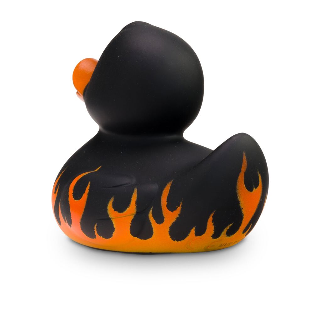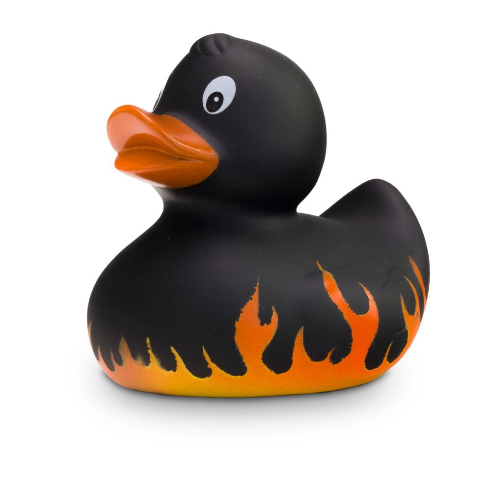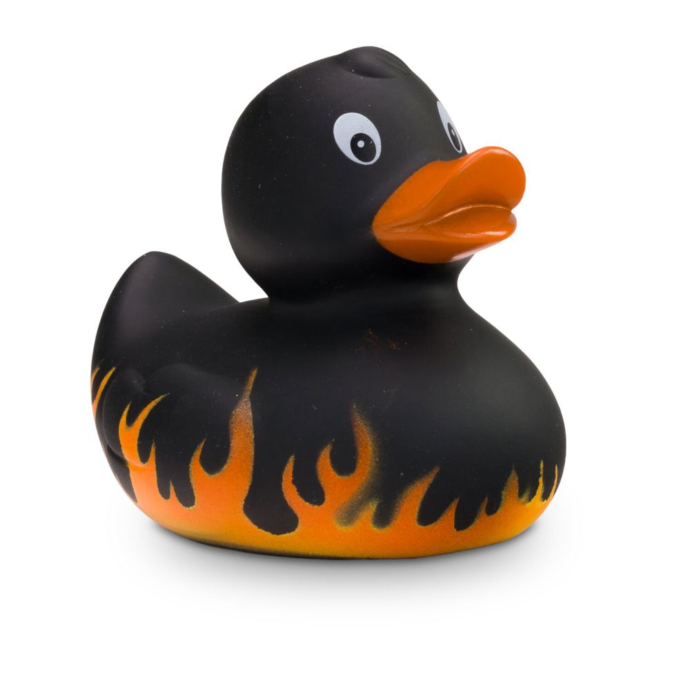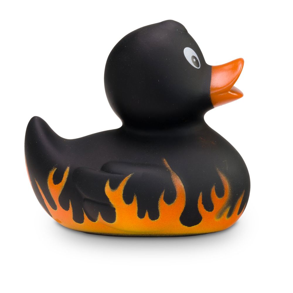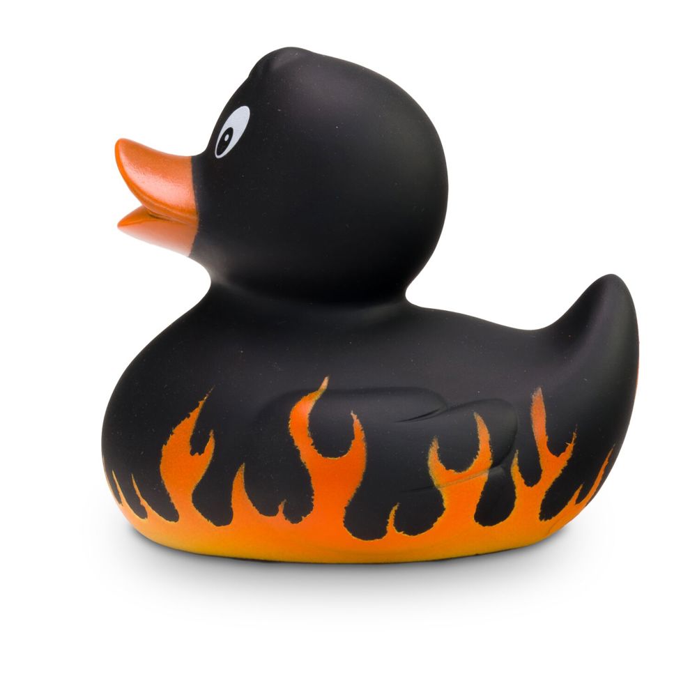 Frank Flamme strahlt etwas Rebellisches aus. Er trägt ein mattschwarzes Gewand mit lodernden Flammen darauf, als hätte er gerade ein Rennen gegen den Teufel gewonnen. Vor allem Rockstars und Rebellen finden an ihm Gefallen. Größe: ca. 8 cm. Inklusive Quietschventil