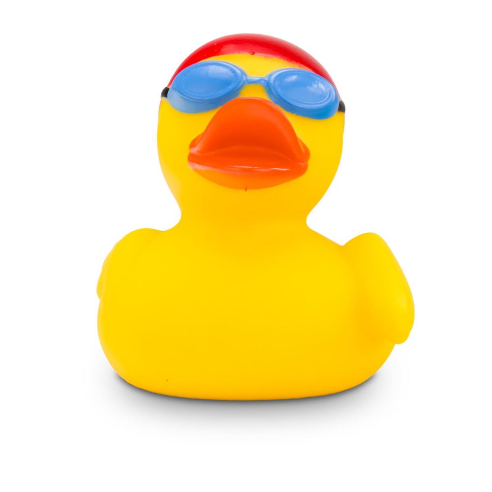 Kristin Kraul trifft man jederzeit im Schwimmbecken an. Sie schwimmt die Bahnen in Rekordzeit, denn Wasser ist ihr Element. Egal ob Freistil, Rücken oder Brust, sie beherrscht alle Lagen im Schwimmbad und Pool. Die rote Badekappe und die blaue Schwimmbrille passen perfekt. So macht ihr keiner was vor. Größe: ca. 8 cm. Inklusive Quietschventil
