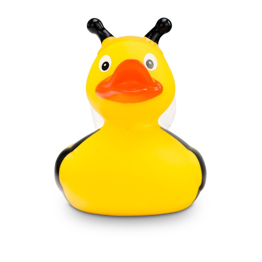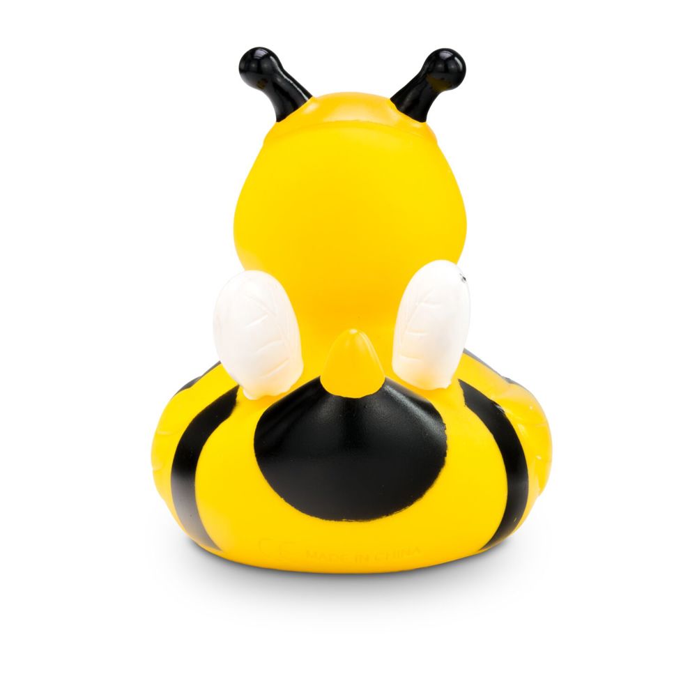 Badeente Susi Summ wäre viel lieber eine Biene als eine Ente. So summt sie fröhlich durchs Badezimmer. Mit schwarzen Streifen, kleinen Antennen und weißen Flügeln ist die kleine Honigbienen-Ente der Hingucker für jedes Schaumbad und sorgt für gute Laune bei Naturfreunden und Bienenliebhabern. Größe: ca. 8 cm. Inklusive Quietschventil