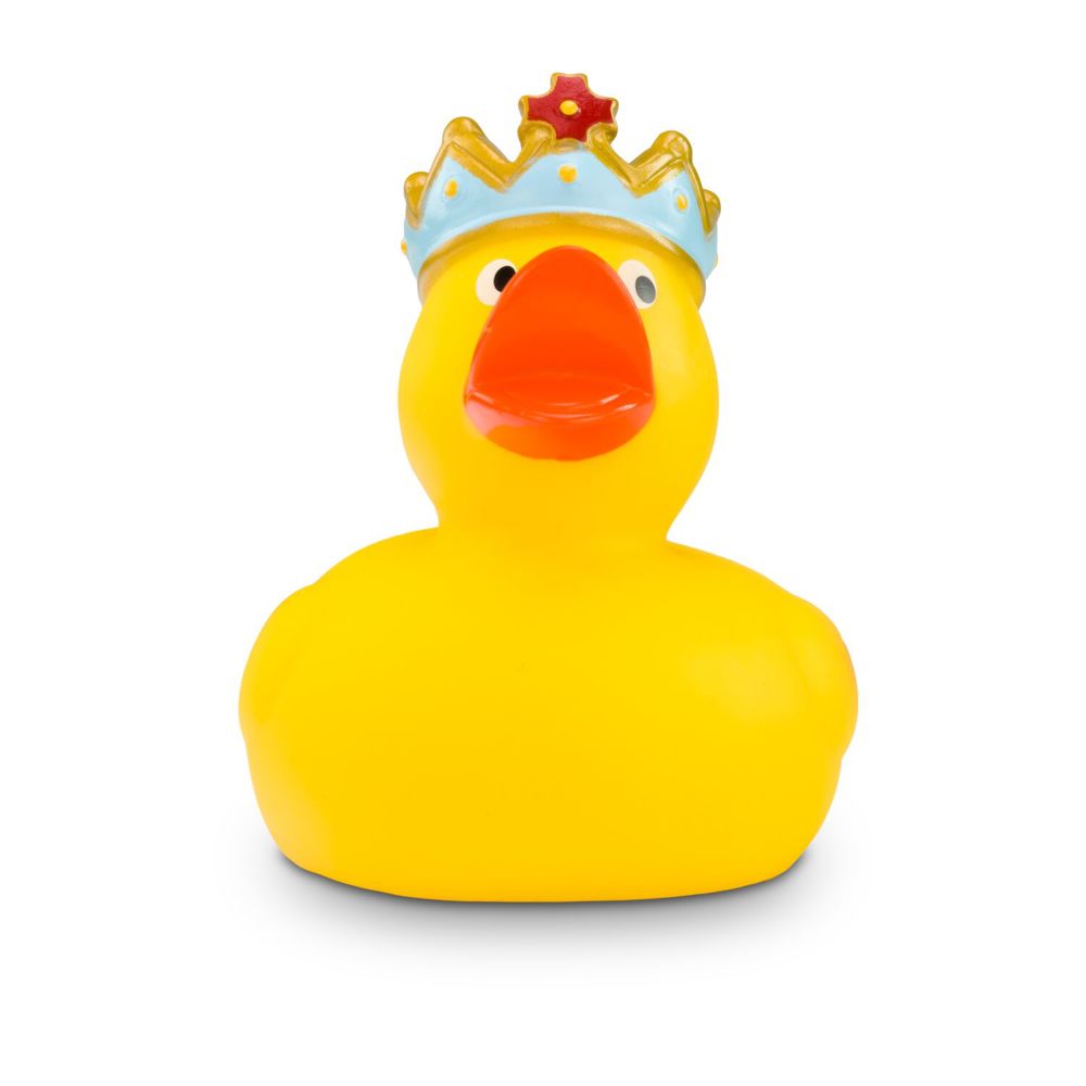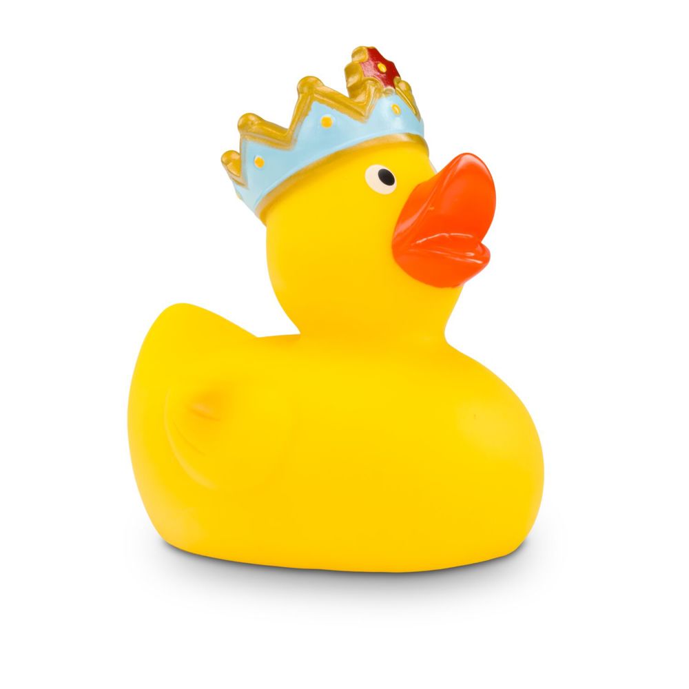 Küss den Frosch! König Quak residiert in seiner Wasserburg gemeinsam mit seiner Froschkönigin. Er trägt wie es sich als König gehört eine majestätische blau-goldene Krone. Größe: ca. 8 cm. Inklusive Quietschventil