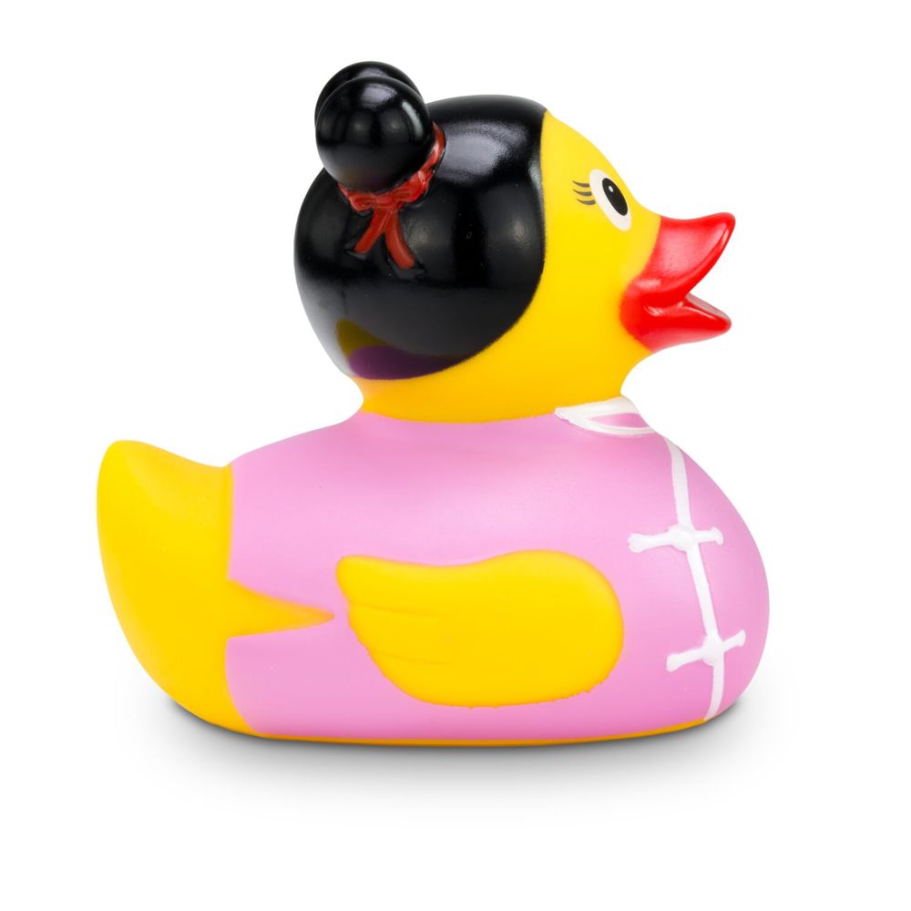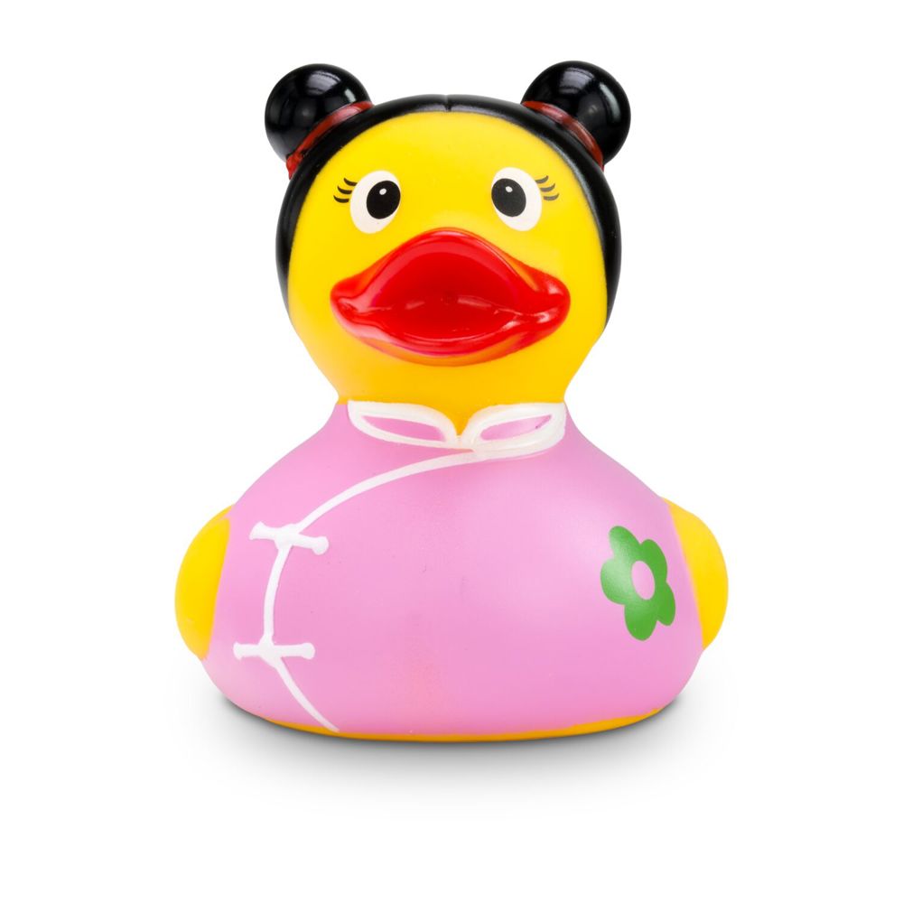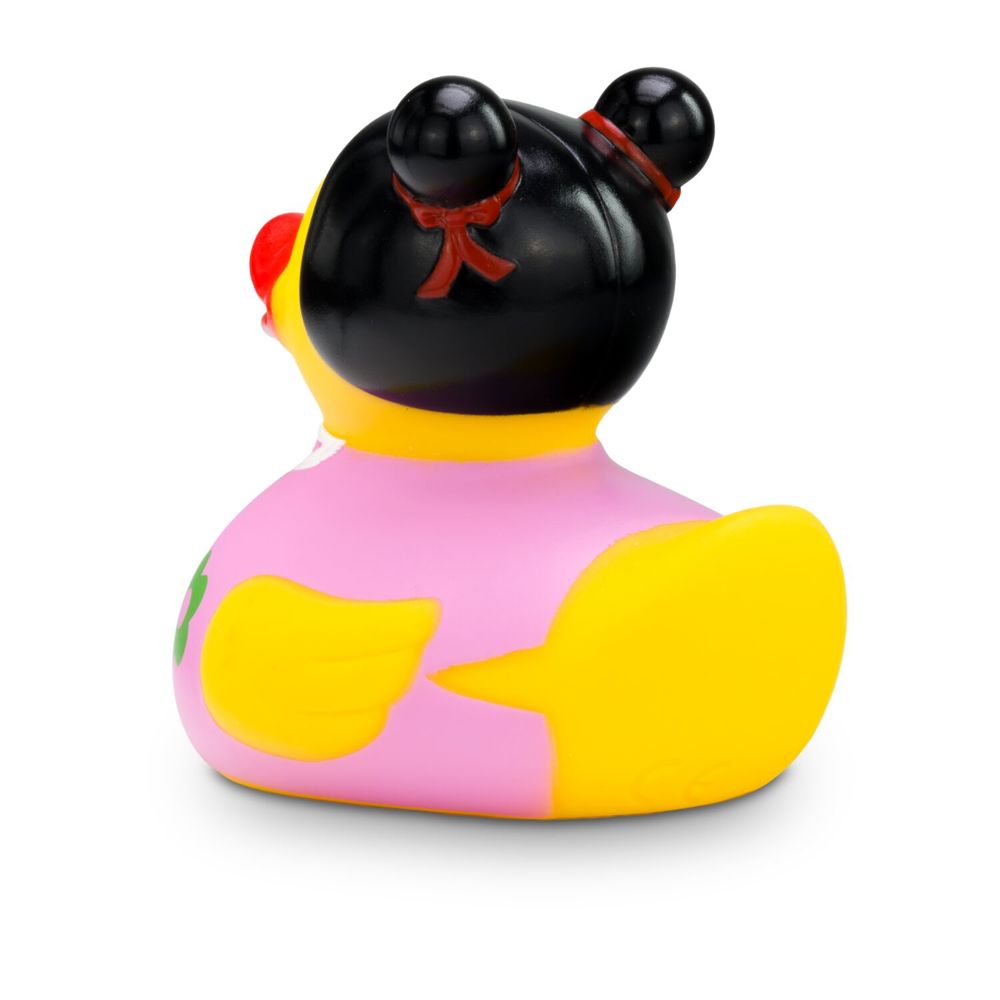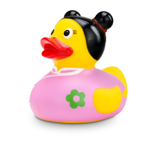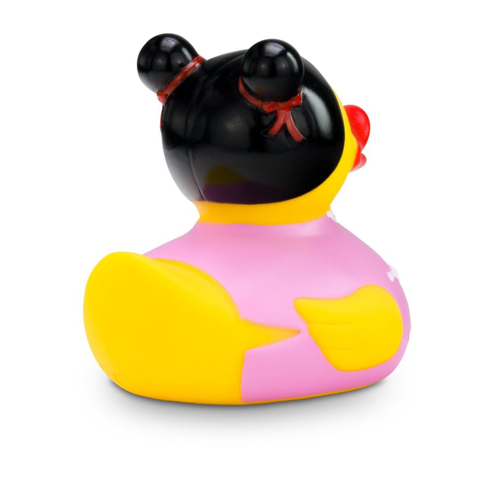 Kim Kimono hat eine lange Reise aus Asien hinter sich. Ihr rosa Kimono und die Dutt-Frisur mit roten Akzenten bringen traditionellen, fernöstlichen Charme in das Badezimmer. Größe: ca. 8 cm. Inklusive Quietschventil