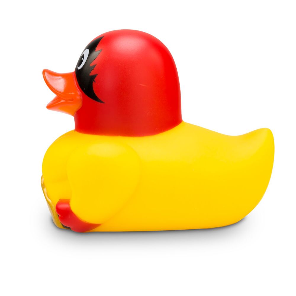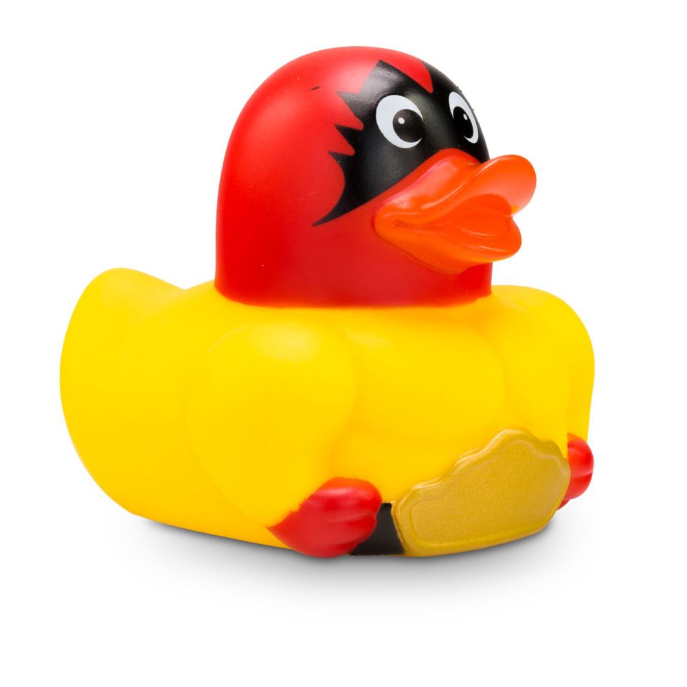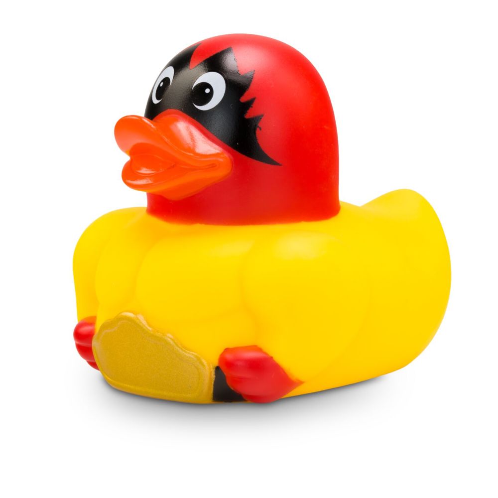 Hulk Hammerfaust bleibt ungeschlagen. Der muskulöse Wrestling-König hält den goldenen Titelgürtel stolz in den Flügeln und blickt mit seiner schwarzen Maske mutig in die Augen seiner Gegner. Fight! Größe: ca. 8 cm. Inklusive Quietschventil