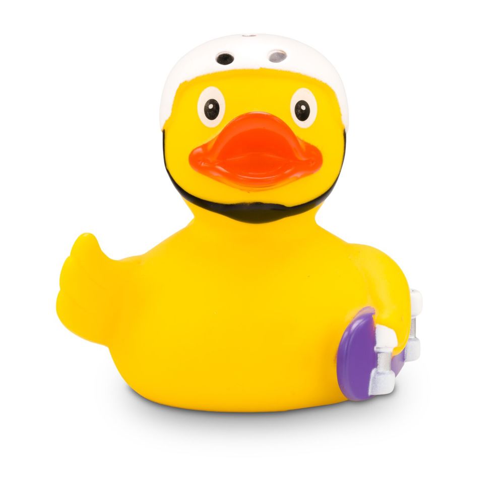 Kai Kickflip ist eine besonders sportliche Badeente, die mit ihrem coolen, weißen Helm, lila... mehr