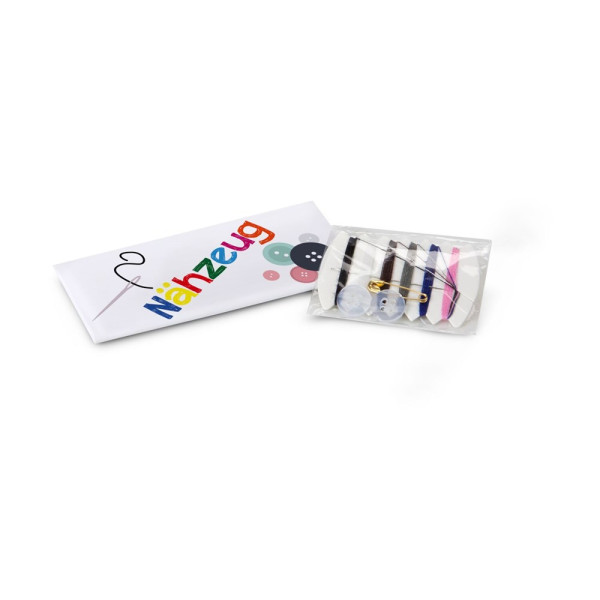 Wenn Sie unser kleines Nähset mit individuell gestaltbarem Kartonmäppchen, 6 verschieden farbigen Fäden, 2 Knöpfen, 1 Sicherheitsnadel und 1 Nähnadel stets in Ihrer Tasche haben, sollte nichts mehr schief gehen. Ein fehlender Knopf ist schnell wieder angenäht und mit der Sicherheitsnadel hat man im Handumdrehen etwas fixiert, sodass ein größeres Malheur verhindert werden kann.