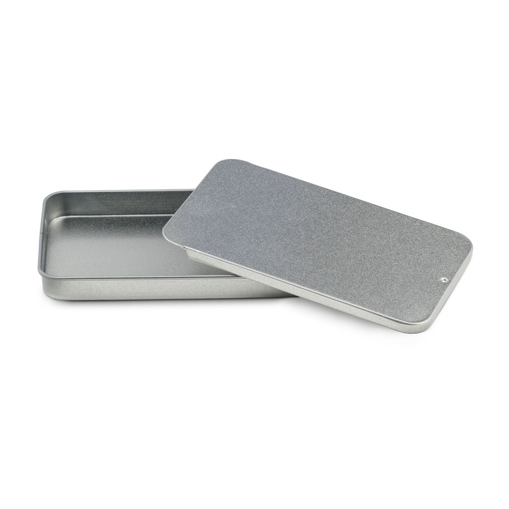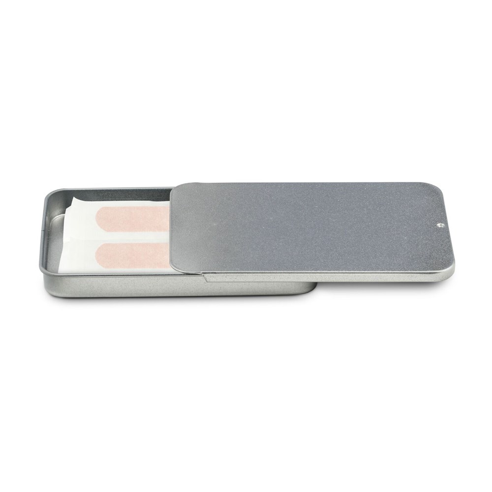 Mit dieser Pflaster-Schiebebox haben Sie ein praktisches kleines Erste Hilfe Set zur Hand. Die robuste aber leichte Schiebebox aus Metall schützt den Inhalt optimal vor Außeneinwirkungen und passt doch bequem in jede Tasche. Ideal für unterwegs! Nach Verbrauch der ersten Füllung kann die Schiebebox nach Belieben wieder befüllt werden, z. B. mit anderen Pflastern, Medikamenten für unterwegs oder auch mit Nähutensilien als kleines Nähset. Das ist praktisch und Ihre Werbung bleibt nachhaltig im Einsatz! Die Schiebebox ist mit 10 Qualitätspflasterstreifen (ca. 60 x 20 mm, einzeln versiegelt) befüllt. Die Schiebebox (ca. 96 x 60 x 11 mm) lässt sich mit einer Gravur und/oder einem individuellen Einleger nach Kundenwunsch branden. Durch die geringen Maße und das leichte Gewicht bietet sich dieser günstige und doch nützliche Streuartikel für ein Mailing oder als Messe-Give-Away geradezu an. Als Inhalt können Sie zwischen 10 Standardpflastern hergestellt in Europa, 10 Fan-Pflastern im Deutschland-Motiv hergestellt in Europa, 10 Monster-Pflastern für Kinder hergestellt in Europa, 10 Sensitiv Markenpflastern (Made in Germany) oder 4 Blasenpflastern hergestellt in Europa wählen.