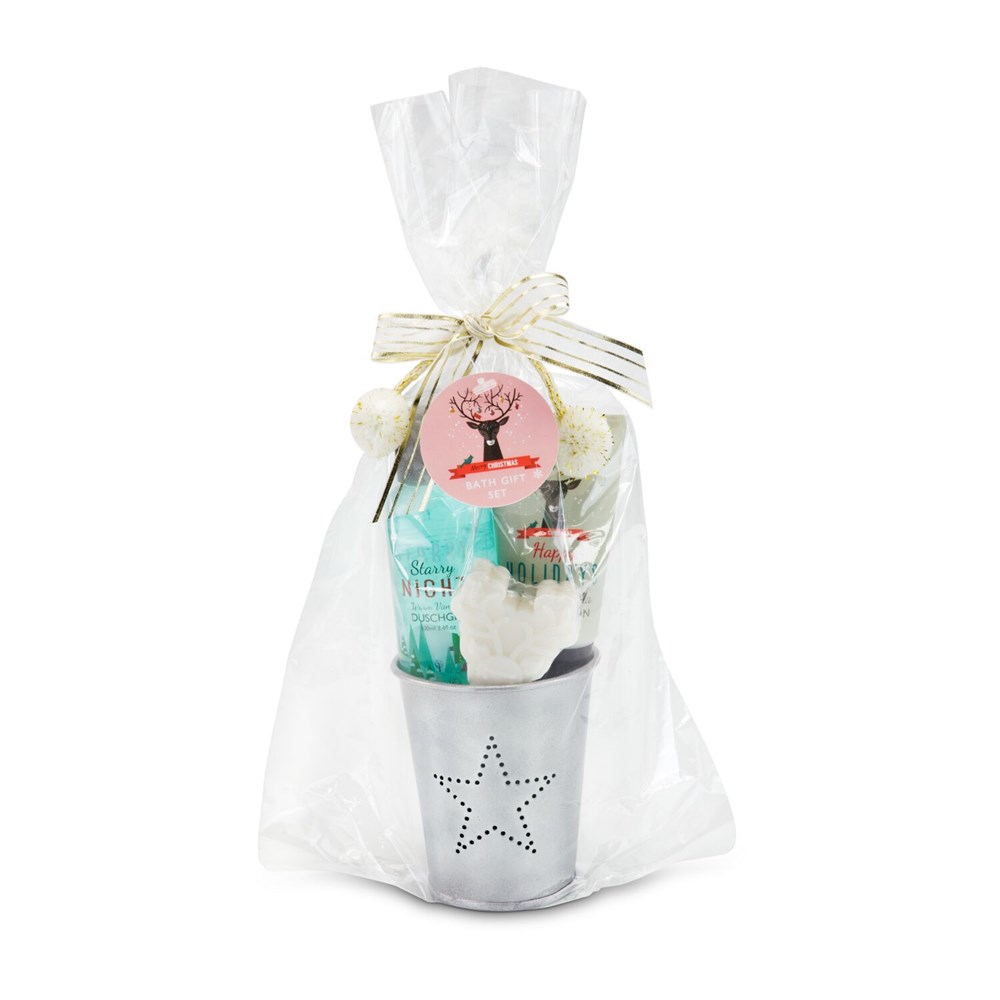 Gerade in der kalten Jahreszeit benötigen wir besondere Pflege. Dieses Set beinhaltet alles was Ihnen guttut: 100 ml Duschgel, 50 ml pflegende Body Lotion und 30 g Seife in Rentierform mit dem Duft nach warmer Vanille und Lindenblüten. Verpackt im silbernen Metallbecher mit Sternstanzung und liebevollem Rentieranhänger.