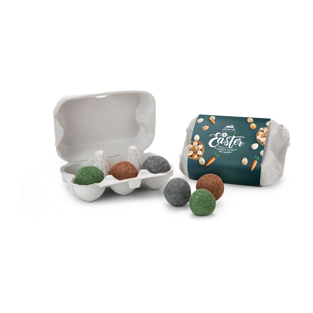 Bienenweide im Oster-Eierkarton, 6 bunte Samenbomben