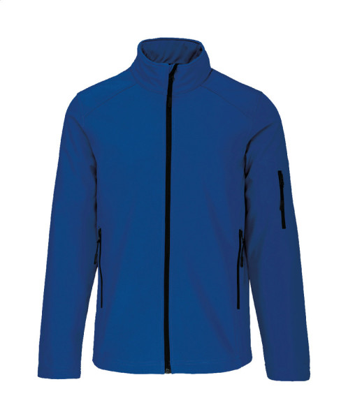 Softshell-Jacke mit Reißverschluss – dreilagig, atmungsaktiv, wind- und wasserdicht – mit Reißverschlusstaschen an Ärmeln und Seiten. Mit atmungsaktiver Zwischenschicht und innenliegendem Micro-Polar-Fleece. 95 % Polyester, 5 % Elasthan, 300 g/m². Marke: Kariban.