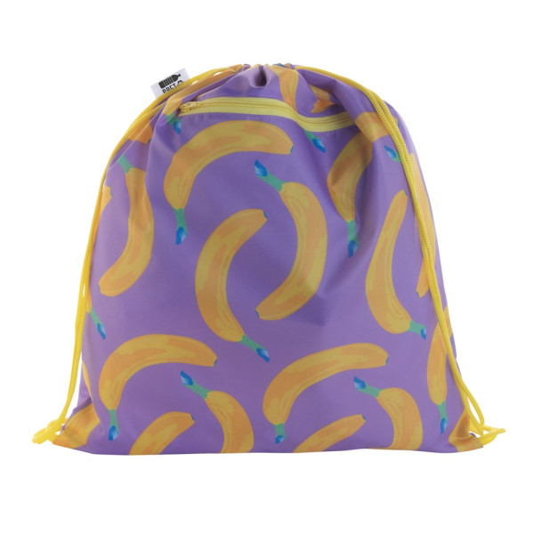 Individueller Turnbeutel mit Kordelzug und Fach mit RFID-Schutz mit Reißverschluss, Material: 190T RPET-Polyester. Der Preis ist inkl. Sublimationsdruck und RPET-Label. Mindestmenge: 25 Stk.