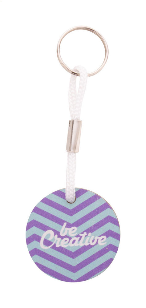 Runder Schlüsselanhänger aus Birkensperrholz mit farbigem Band aus Polyester und Vollfarbdruck. Der Preis ist inkl. UV Druck auf einer Seite. Mindestmenge: 200 Stk.