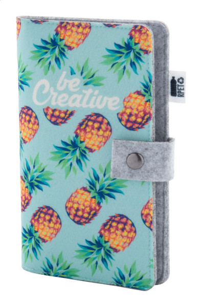 Individueller Reiseorganizer aus RPET-Filz mit vollfarbig bedrucktem Einband, mehreren Innentaschen und Druckknopfverschluss. Mit markantem RPET-Label. Der Preis beinhaltet den Sublimationsdruck. Mindestbestellmenge: 50 Stück.