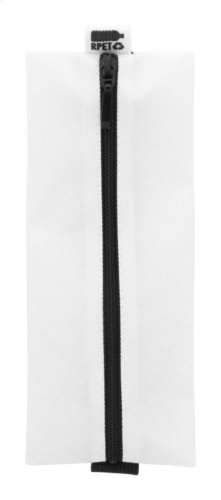 Individuelles Stifteetui mit Reißverschluss aus 600D RPET-Polyester mit Gummiband zur Befestigung an einem Notizbuchumschlag. Mit vollflächigem Sublimationsdruck. Mit RPET-Label. Mindestmenge: 50 Stk.