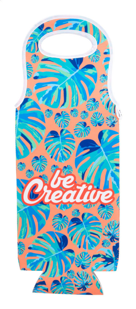 Individuelle Weinflaschentasche aus RPET Neopren mit Henkeln. Der Preis ist inkl. all-over Sublimationsdruck. Mindestmenge: 25 Stk.